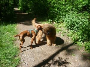 Komme gerade von einem Besuch bei meinem Kumpel Duke in Berlin zurück. Zehn Monate ist der jetzt und fit wie ein Turnschuh. Er kam auch über Vizsla in Not nach Deutschland und wurde von seinem neuen Frauchen im Februar adoptiert. Ich hab mich so gefreut, als ich den Jungspund sah. Der hat einen langen Leidensweg hinter sich. Wurde in Ungarn mit gebrochenem Hinterbein aufgelesen, dort zweimal operiert und nun mit Physiotherapie weiterbehandelt. Sein Frauchen hat sich nämlich fest in den Kopf gesetzt, aus Duke einen richtig gesunden Vizsla zu machen. Und das ist ihr gelungen. Man sieht kaum mehr was von seinem Handicap! Wir sind durch den Wald gesaust, und Duke hat mich sogar abgehängt. Alter Schlingel! Seht am besten selbst!