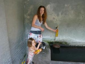 Wasserknappheit in Umbrien. Alle verfügbaren Behälter werden gesammelt, denn im nächsten Dorf gibt es noch eine sprudelnde Quelle!