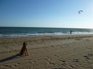 Bin im Urlaub. Probiere gerade Kitesurfen, aber es hapert. Werde immer weggeweht. Blöder Wind! Wuff!!