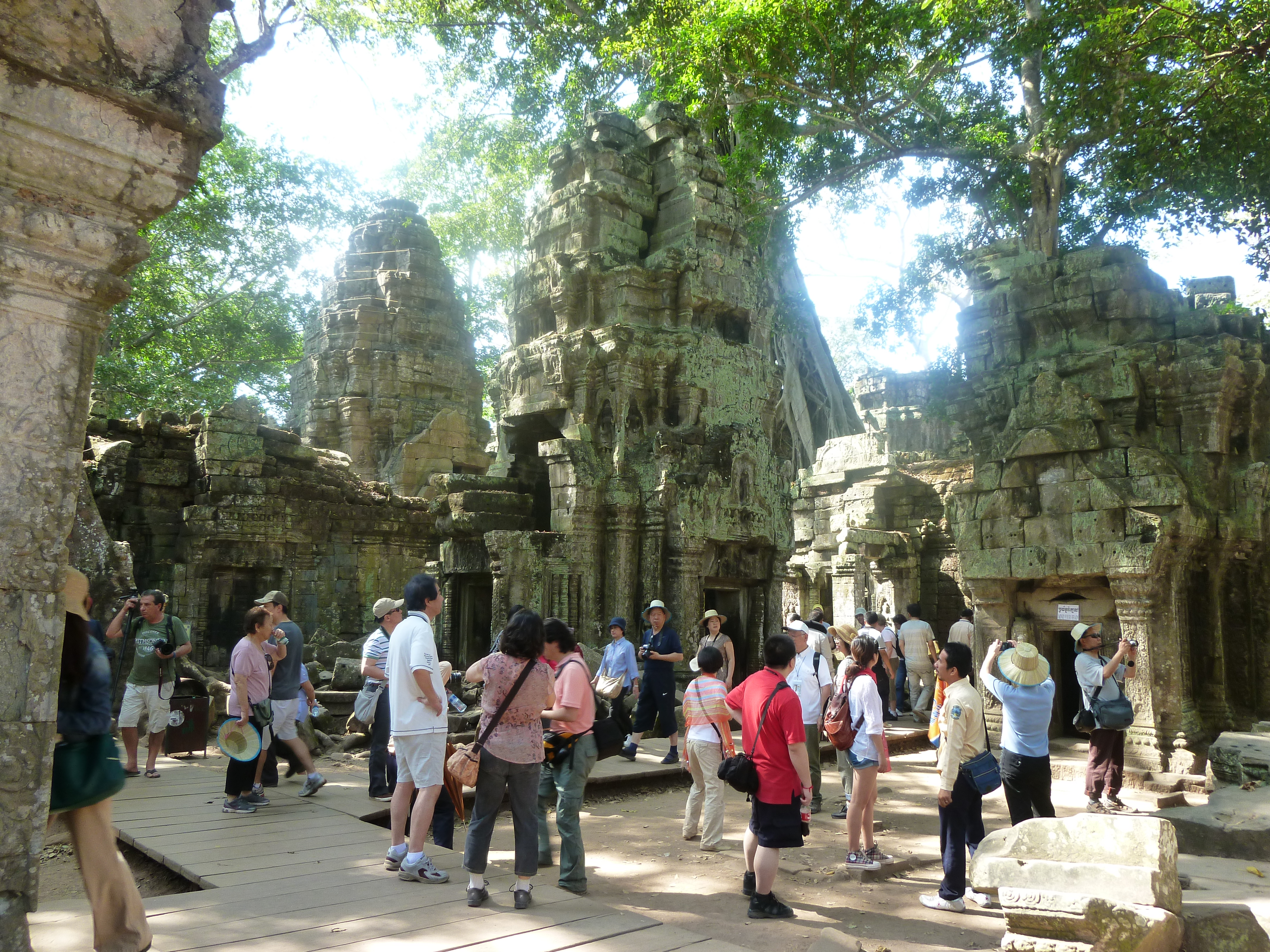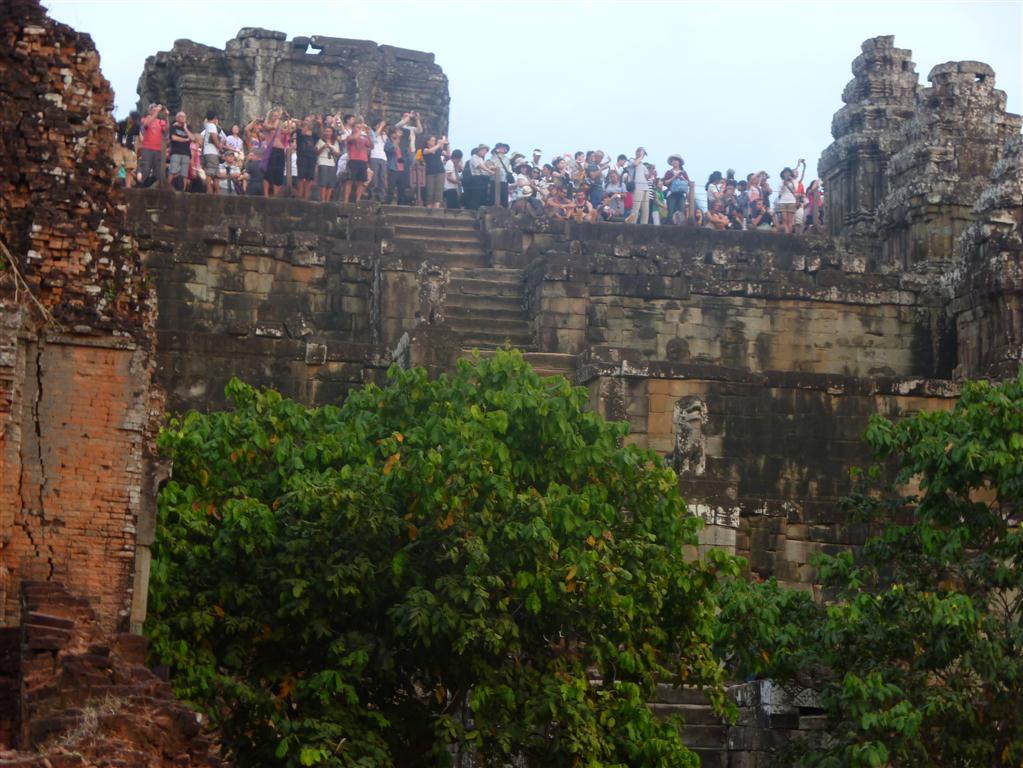 I could not believe what I was seeing today: Thousands of Chinese tourists frequented the ruins. It seemed as the whole of China transmitted here. From the morning till the evening busloads of noisy tourists! One Chinese man told me, since Siam Reap has an international airport Angkor is a very popular holiday destination for some days. I also did not recognize Siam Reap, once a sleepy town, again. On the outskirts are big modern hotels, where all Chinese groups stay in thousands by themselves. In case they come in the evenings in town to visit a restaurant, they do this only in big groups for not mixing up with other travellers. My illusion of a quiet relaxed jungle atmosphere was gone …
