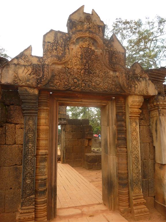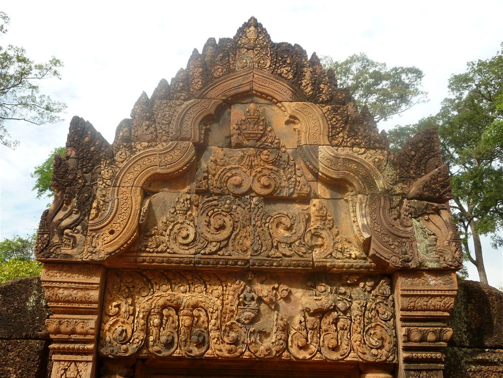 The temple of Banteay Srei is considered by many to be the jewel in the crown of Angkorian Art. A Hindu temple, dedicated to Shiva, is cut from stone of pink and includes some of the finest stone carvings. It is one of the smallest sites at Angkor – maybe for that I am fond of it. The temple is wonderfully well preserved and many of its carvings are three-dimensional. Banteay Srei means “Citadel of the women” and it is said that it must have been built by a woman, as the elaborate carvings are too fine for the hand of a man! I always knew: Women art are better art, haha!