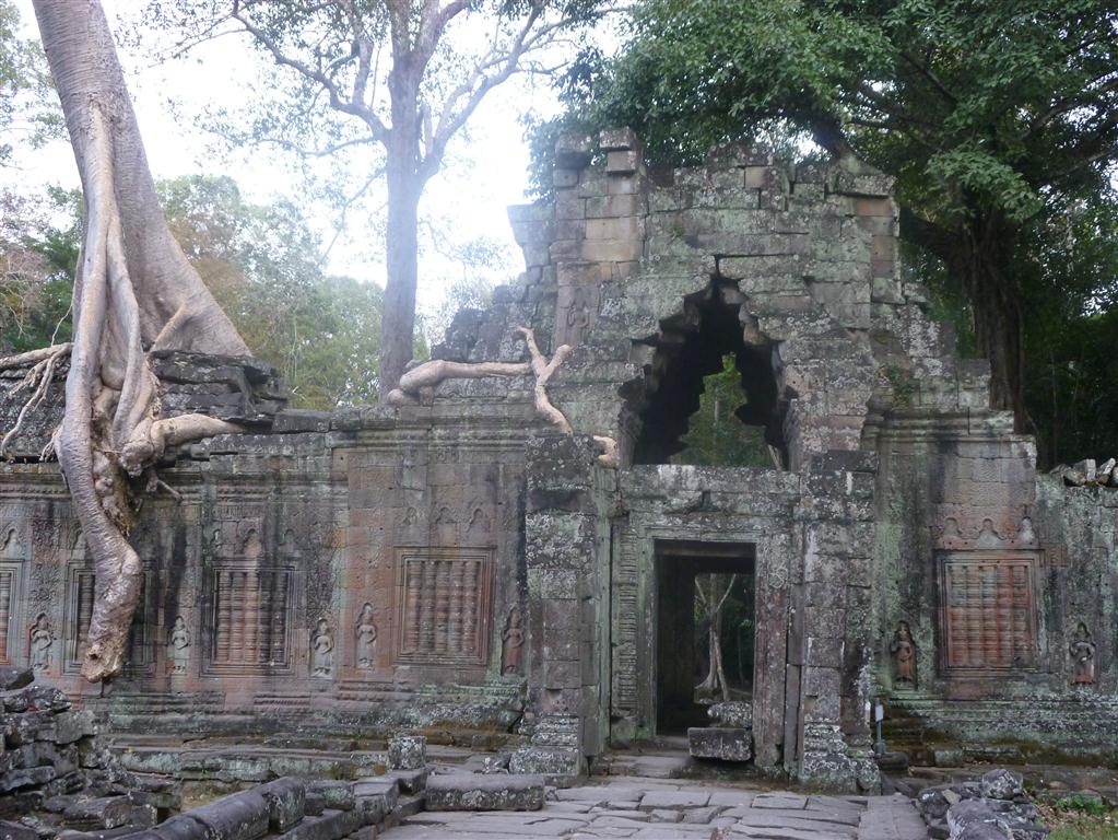 My favourite temple many years ago was Ta Prohm, covered by jungle. At that time I could not further go, because landmines and the strong impact of the Khmer Rouge hindered anybody to discover that beautiful country. I just did not want to loose a leg or my life due to a landmine, so Ta Prohm was for me the most distant temple I could go. Today this wonderful site – still has its magic like before – is overrun by tourists. Its appeal lies in the fact that it has been left to be swallowed by the jungle, and looks very much the way most of the monuments of Angkor appeared when European explorers first stumbled upon them. Well, I saw restauration work going on, which means the jungle is pegged back and only the largest trees are left in place, making it manicured rather than raw like beautiful Beng Mealea, which I introduce later in this chapter.
