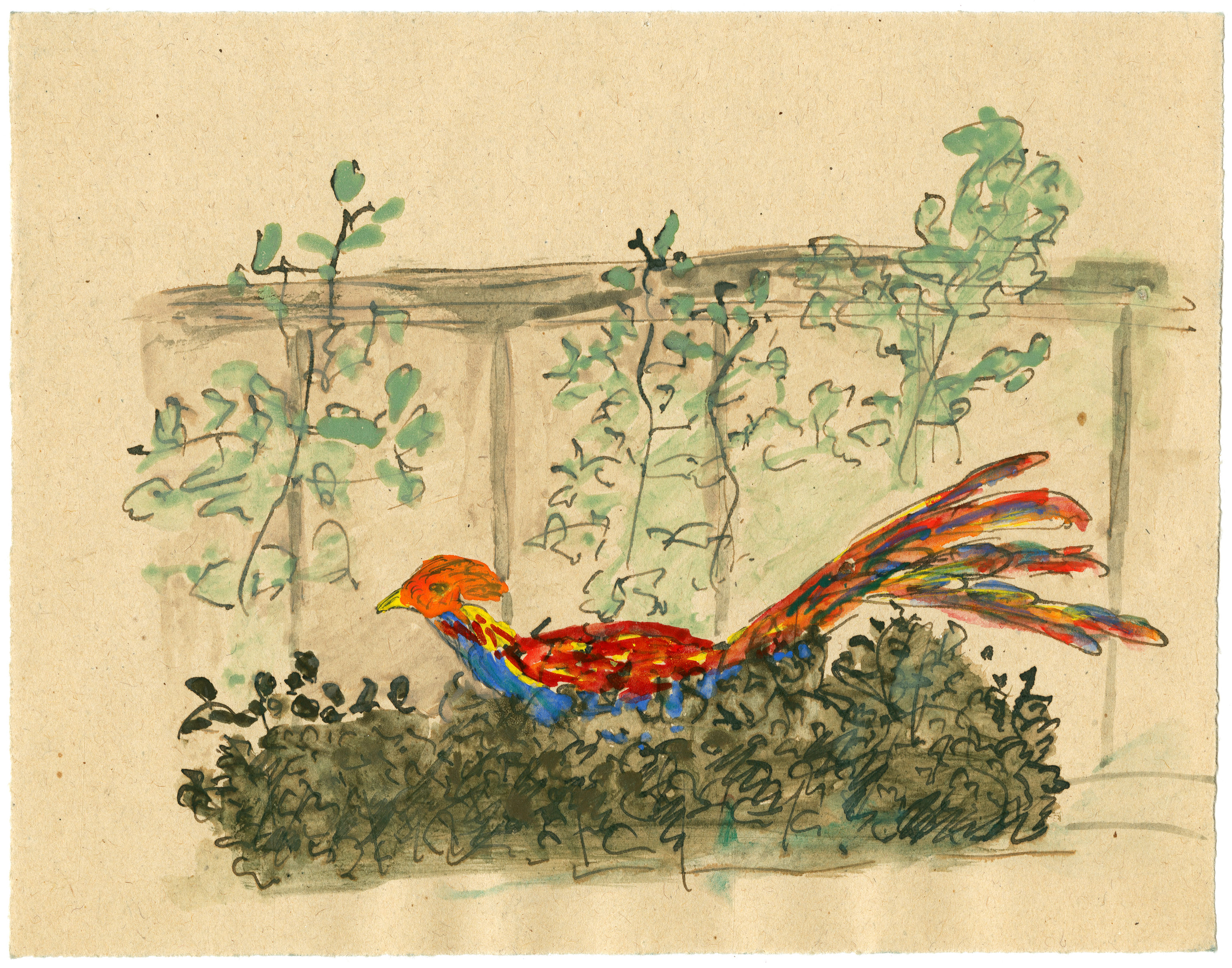 Seit Beginn der 1930er Jahre griff Hesse mehr zum Zeichenstift und verzichtete oft ganz auf die Farbe. Mehrere seiner Zeichnungen setzen sich mit seinem Umzug innerhalb von Montagnola auseinander: 1931 heiratete er seine dritte Frau Ninon Dolbin und zog mit ihr von der romantisch-versponnenen Casa Camuzzi in die neu erbaute Casa Rossa. Mit der Festigung seines äußeren und inneren Lebens ließ Hesses malerische Tätigkeit nach. Weiterhin aber schrieb er gern auf selbst illustriertem Briefpapier. Zahlreiche dieser Briefe, aber auch Manuskripte wie die zauberhafte Handschrift „Piktors Verwandlungen“ für seine zweite Frau Ruth Wenger, waren in der Ausstellung zu sehen.