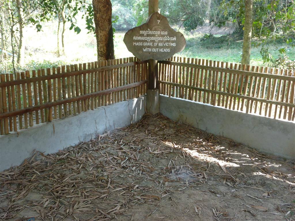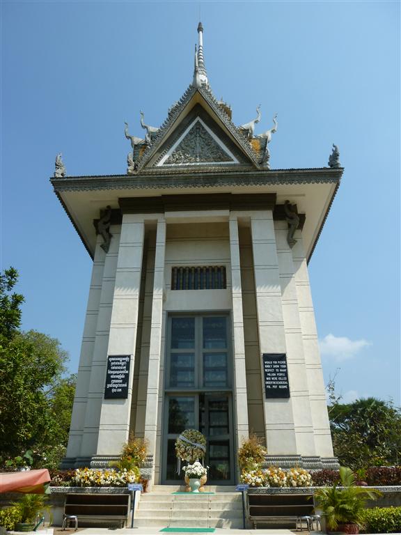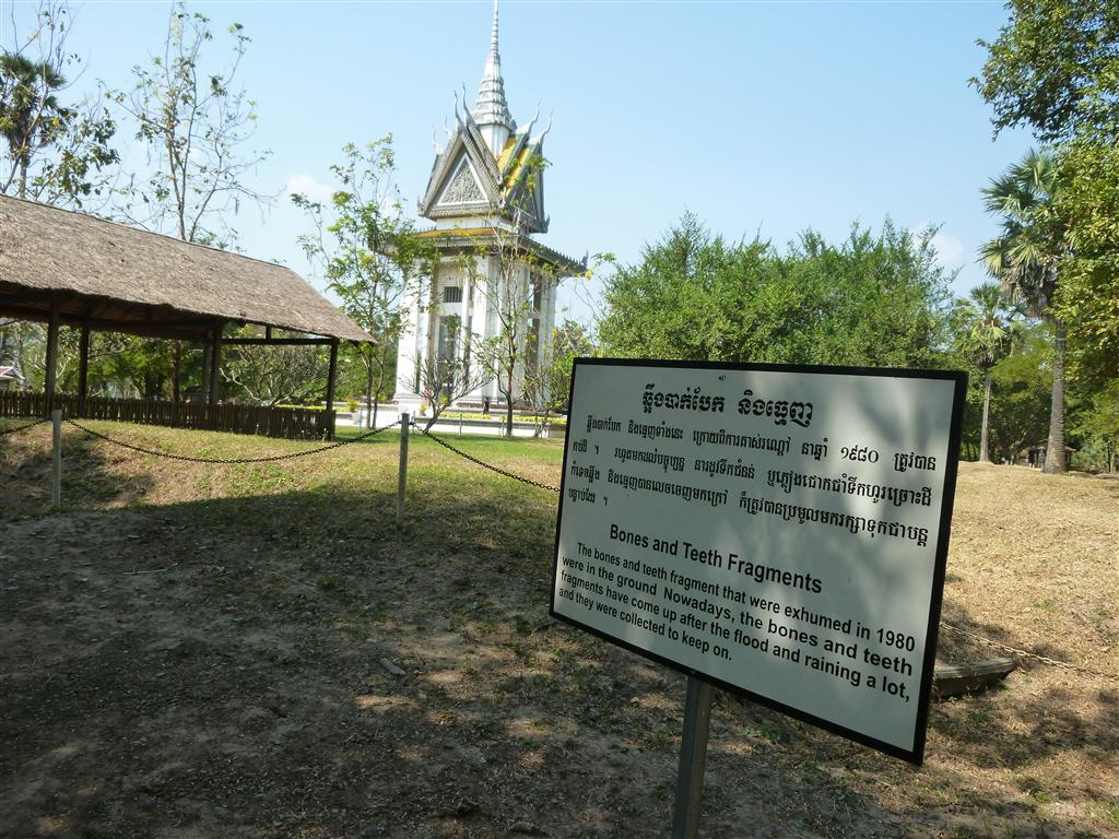 Fragments of human bone and bits of cloth are scattered around. More than 8.000 skulls, arranged by sex and age, are visible behind the clear glass panels of the Memorial Stupa, which was erected as a memory in 1988. There are more than 300 killing fields in the country.