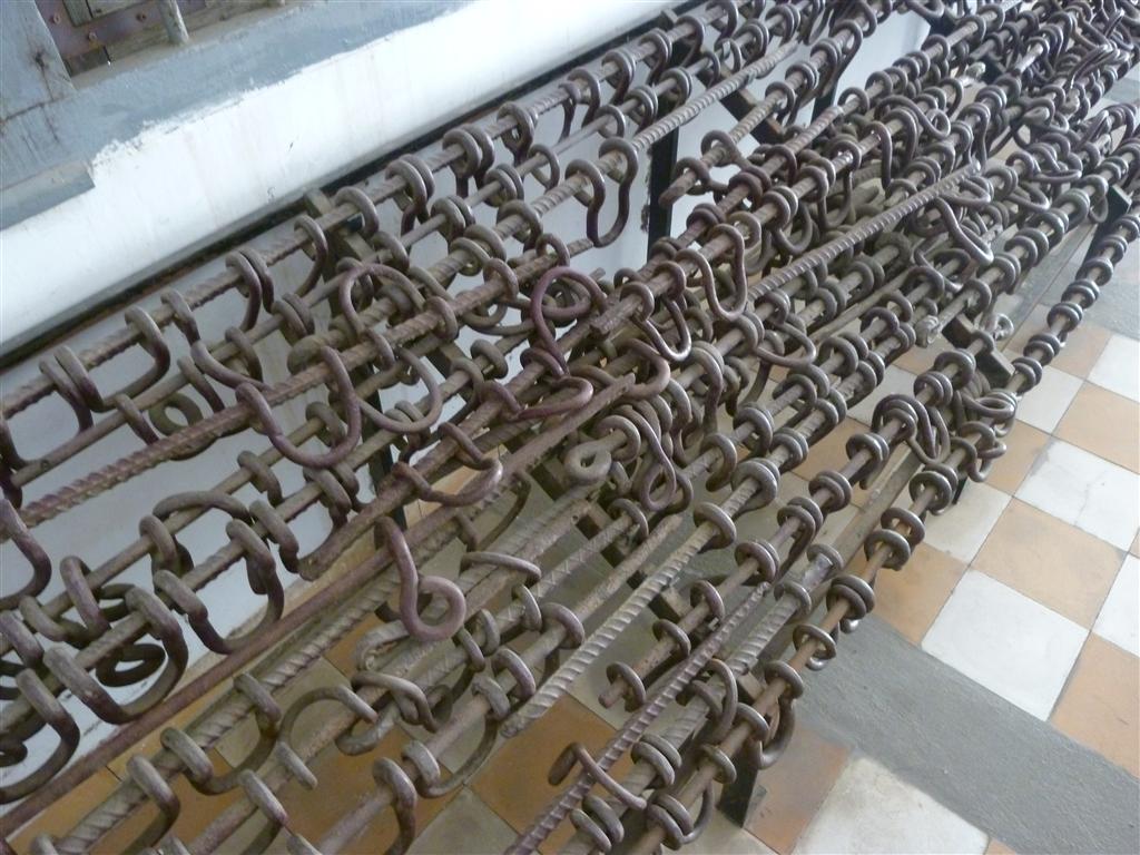 A wooden pole in the yard once used for physical education of students was turned into interrogation and torture machine. The interrogator tied both hands of the prisoner behind their back and lifted the prisoner upside down. This action was repeated a number of times until the prisoner lost consciousness, then the interrogator dipped the prisoner´s head into a barrel of filthy water. This shocked the victims back into consciousness, so that the torturers could continue their questioning. In total 1.684 staff members were employed there during the peak time of the Khmer Rouge regime. About 20.000 people got killed at S 21. Normally their imprisonment took between 2 to 4 months. Political prisoners were held between 6 to 7 months.