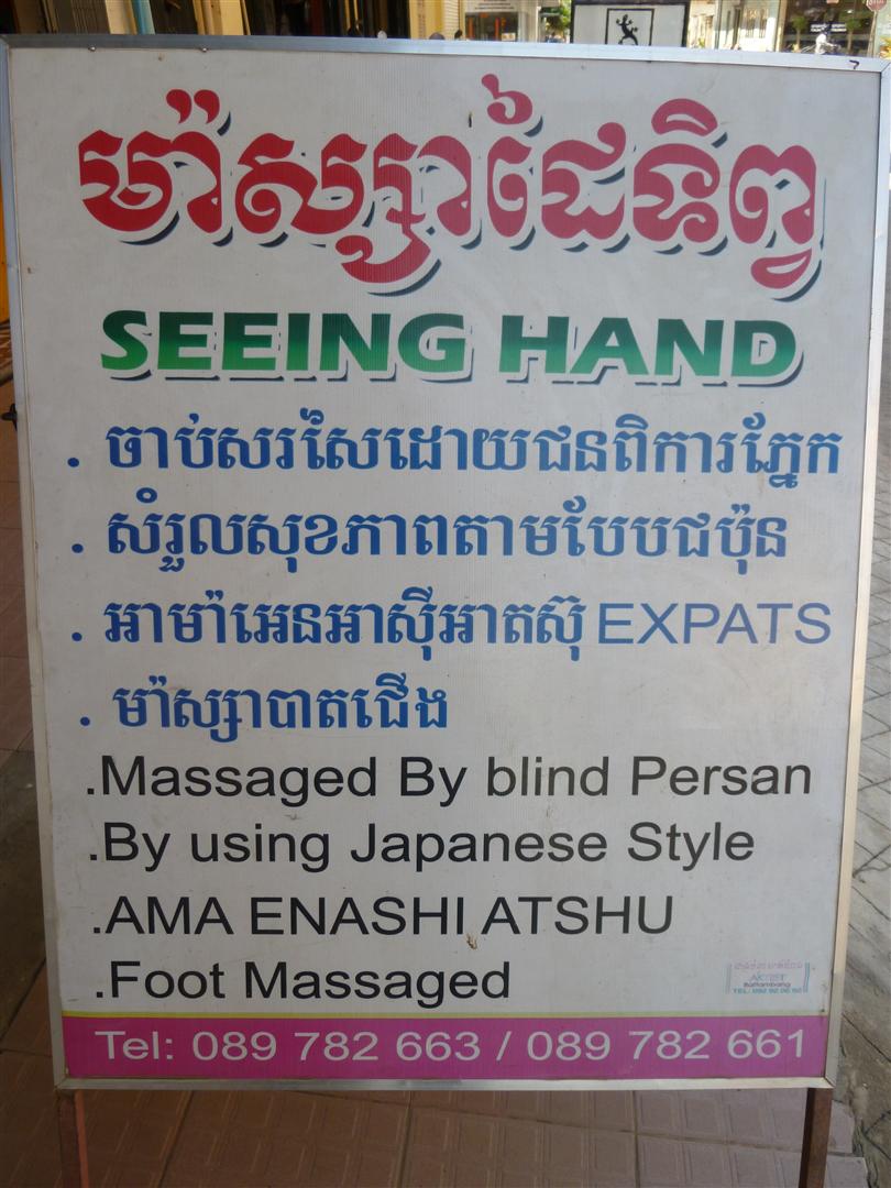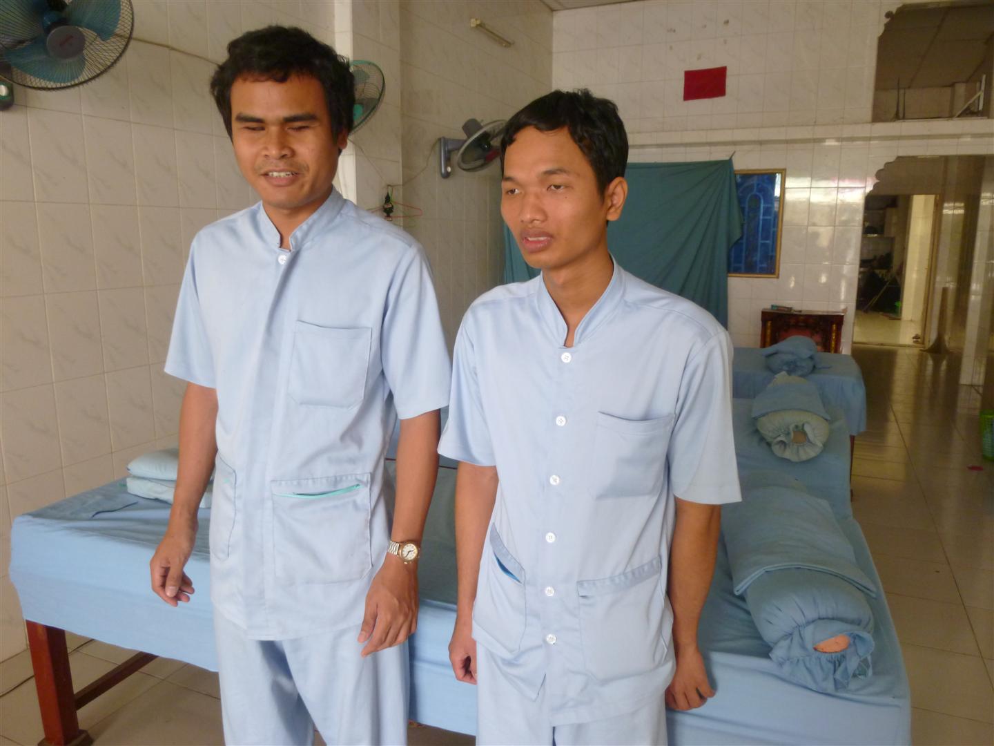 Blind masseurs are trained in Japanese Shiatsu- as well as Anma-massage and Chinese foot massage. All profits go towards assisting blind people in Cambodia. The team of blind masseurs has successfully completed the Association of the Cambodian Blind Training Course (ABC) and is officially acknowledged by the ABC. The massages relieve tension and reduce stress and exhaustion. The treatments are also therapeutic for those suffering from high blood pressure, headaches, backaches, muscle cramps and sleeplessness.