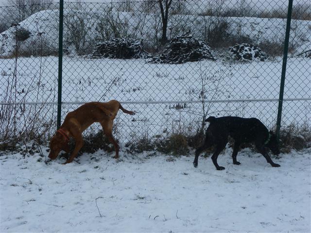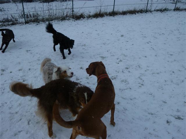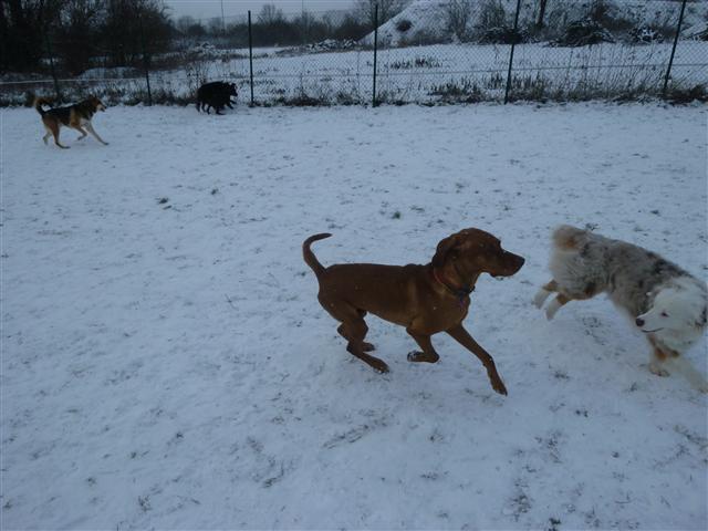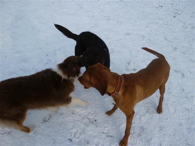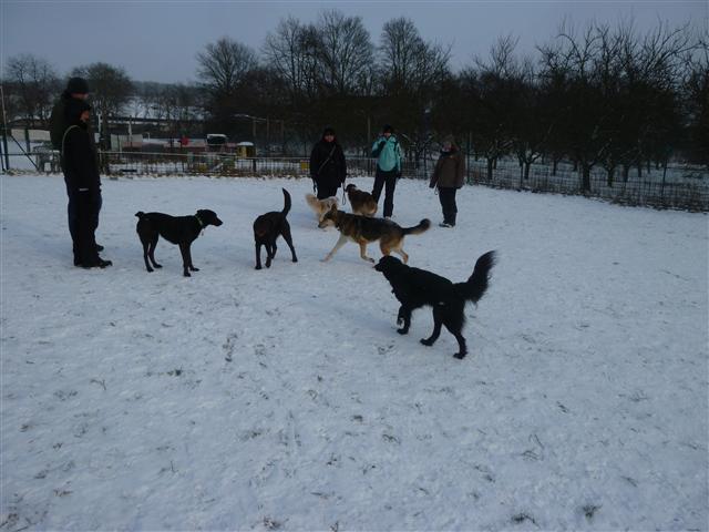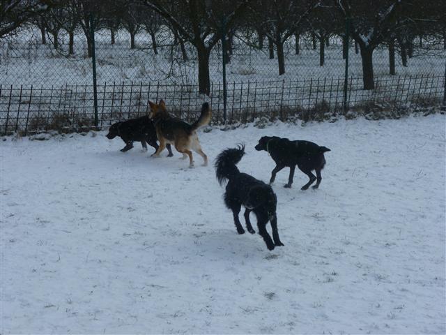 Schneetoben in Simones Hundeschule. Und das mit den Kumpels Manuel und Timmi. Auch die flotten Mädels Paula und Lucy waren dabei. Hat Spaß gemacht! Wuff!