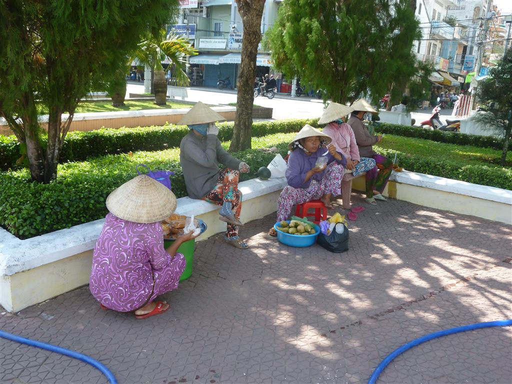 Continuing to Vietnam by van. Every seat was occupied. For getting all the tourists we had to drive around Kampot a couple of times. At the border we waited for one hour. The border patrol asked for a vaccination certificate. People like me who had it not with had to pay 1 Dollar. That’s it! At the border town Ha Thien we had to board on a Vietnamese bus. I could only survive the noise with earplugs. Loud music, loud voices and all the mobile phones had their loudspeakers on. Cambodian attitude is much more relaxed, Vietnam is hectic, loud and screaming.