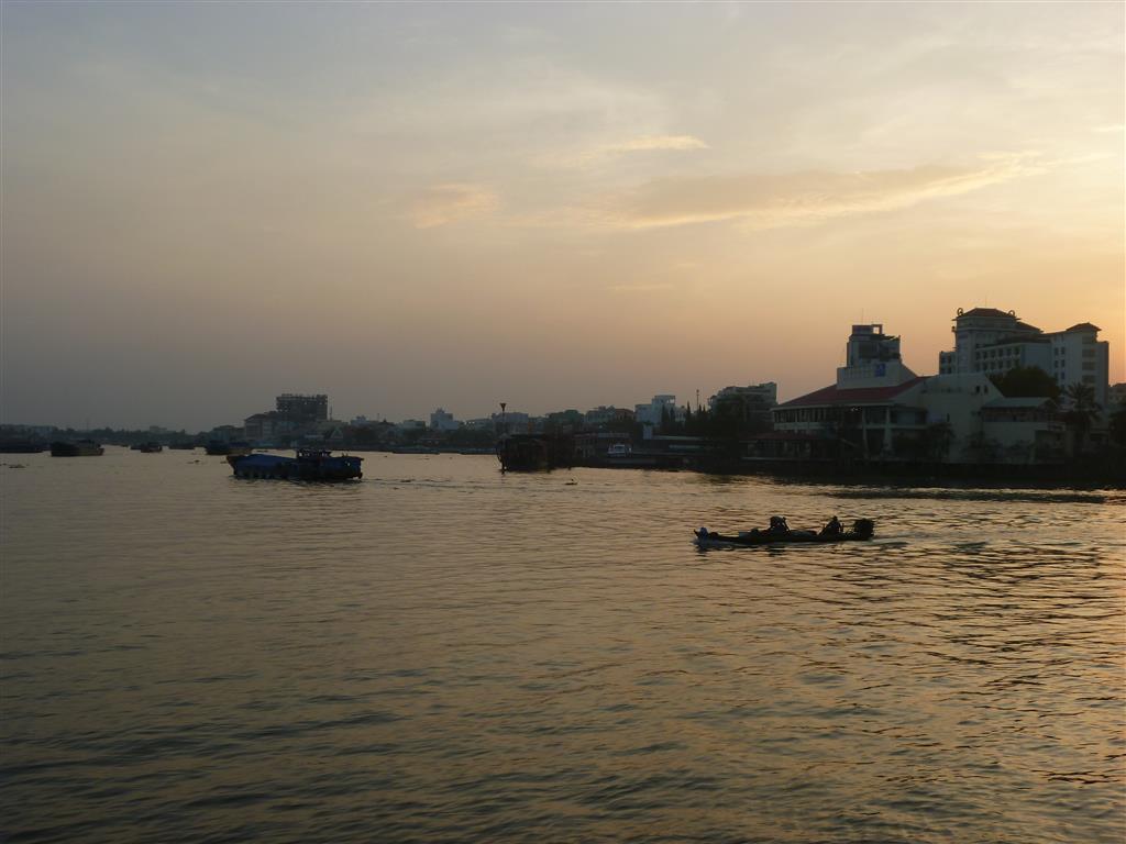 It was already dark when I jumped out of the bus at Cantho, a city in the Mekong delta. I went on the back of a motorcycle, which are common taxis. My bag was in front between the legs of the driver. I stayed in the nice hotel Kim Lan not far away from the water front. I had booked a room via booking.com and when I arrived they upgradet it for free. Not bad. I went to the Old Market at the river and there visiting the restaurant Sao Hom, where I ate delicious spring rolls. Cantho is a busy town with 500.000 inhabitants.