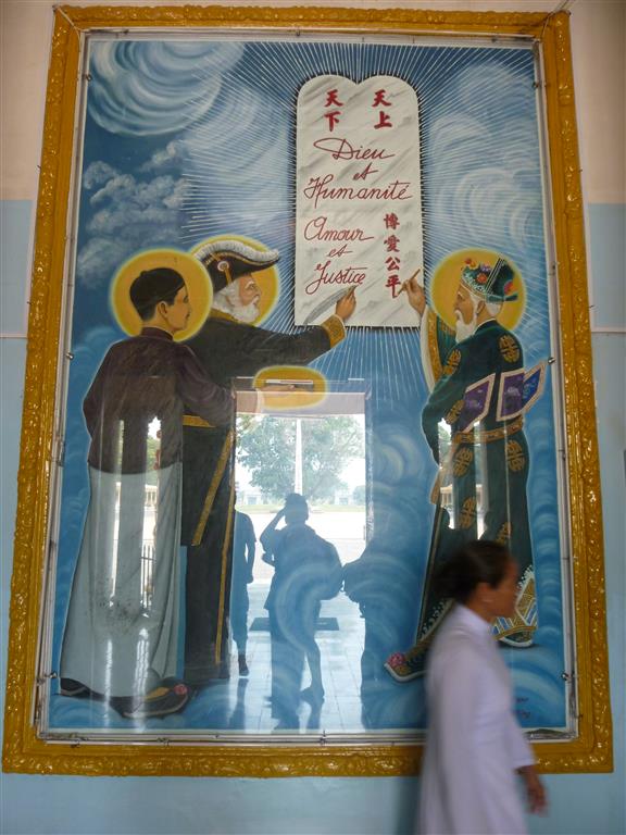 I decided to go on a 8 Dollar organised bus tour from Saigon to Tay Ninh, a city in a tropical, agricultural area, and besides the Cao Dai temple and the nearby Cu Chi tunnel system left over from the Vietnam War, there is little to draw tourists. Tay Ninh is home to the amazing Cao Dai religion and its colourful temple. Caodaiism is a relatively modern religion, officially established in the city of Tay Ninh in 1926.