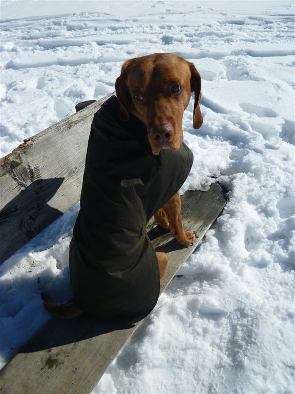 Mein neues Mäntelchen von Barbour! Chic, was! Wie für mich gemacht, wuff! Und dazu schneetauglich, wasserfest und warm. Was will iVizsla mehr?!