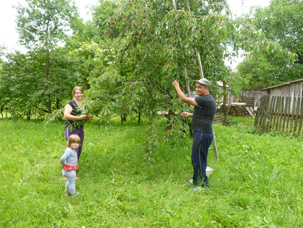 Sie bittet mich in den schlichten Hof und zeigt mir das Holzhaus, in dem die Familie wohnt. Dann schenkt sie mir ein paar Handvoll Kirschen für die Weiterfahrt.