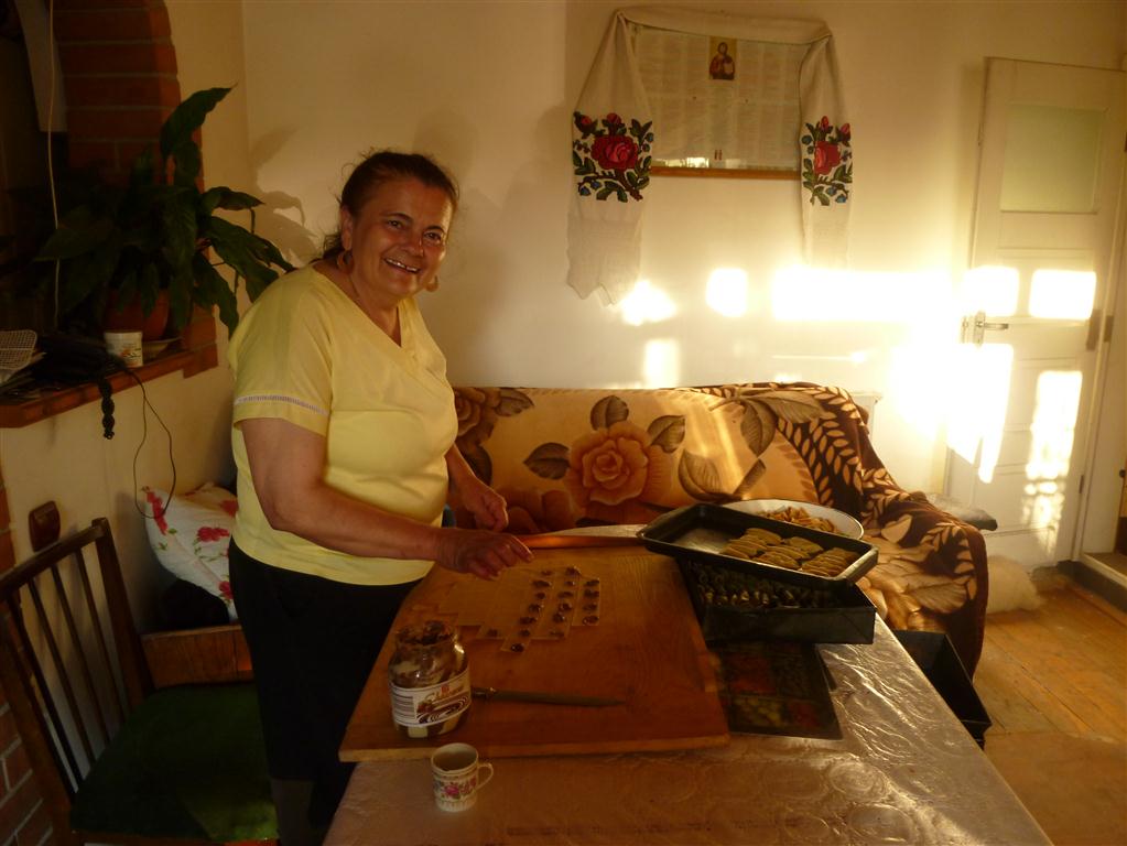 Wir logieren bei Maria Stetna in ihrer Pension nahe des berühmten Friedhofes. Laut booking.com ist es die beste Unterkunft in dem kleinen Ort. Und Maria macht dem guten Ruf ihrer Unterkunft alle Ehre. Sie kümmert sich um das Wohlwollen ihrer Gäste mit traditioneller Küche, selbstgemachten Schnaps und Wein aus der Region. Zudem backt sie Plätzchen mit Schokoladenfüllung, lässt mich gern probieren und webt Teppiche am hauseigenen Webstuhl.