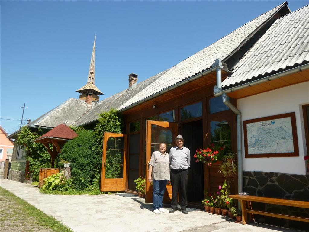 Und natürlich kennt sie das alte Handwerk des Spinnens. Sie zeigt mir Decken und Teppiche, die in Handarbeit entstanden sind. „Nur an drei Orten in Rumänien wird noch traditionell gewebt, Sapanta ist einer davon“, sagt ihr Sohn Daniel. Dann zeigen mir Mutter und Sohn den besonderen Raum, der in jedem rumänischen Wohnhaus der Stolz der Besitzer ist. An den Wänden hängen handbemalte Keramikteller und es gibt Sitzgelegenheiten mit folkloristischen Mustern. Die Farben Rot, Weiß und Blau dominieren. „In diesem Raum werden neugeborene Kinder gezeigt, Hochzeitspaare laden zum Empfang und Tote aufgebahrt“, sagt Maria. In der Tat hätte jedes Haus einen solches Zimmer. Mein Blick fällt auf acht große mit schneeweißer Bettwäsche überzogenen Kopfkissen. „Die bekommen meine Söhne zur Hochzeit, jeder von ihnen vier Stück.“ Aha, also so eine Art Aussteuer oder Mitgift. Tatsächlich haben wir es schon erlebt, dass uns Frauen in ihr Haus beten, um uns „ihren“ Raum zu zeigen. Und alle sind sie prunkvoll ausgestattet.