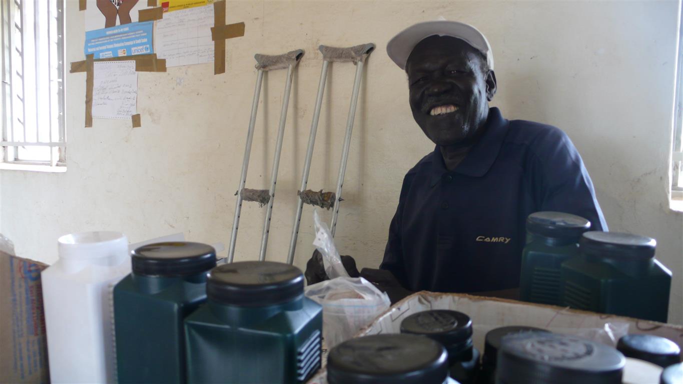 Dr. James ist bei unserem Besuch dabei. Er ist Lepra- und Tuberkulosespezialist und arbeitet für das nationale Kontrollprogramm. Er kommt regelmäßig zur DAHW in Juba. „Unsere Kooperation ist ausgezeichnet“, lobt er. Seine Aufgabe sei es unter anderem, alle Lepra-Aktivitäten zu planen und zu überwachen. „Ich organisiere auch die regelmäßigen Schulungen für die Personen, die im Gesundheitssektor arbeiten.“