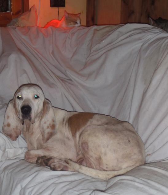 Flüssigkeitsaufnahme, Serum spritzen, Medikamente kaufen und geben. Hin und her Rennerei, extra für sie Futter zubereiten, sie säubern, wenn sie sabberte oder wenn sie Durchfall hatte oder sich erbrach. Die letzten drei tage musste ich sie überall hin auf den armen tragen, weil sie sich nicht mehr auf den Beinen halten konnte. Von ihrem Platz aufs Sofa, vom Sofa raus in den Garten und wieder zurück.