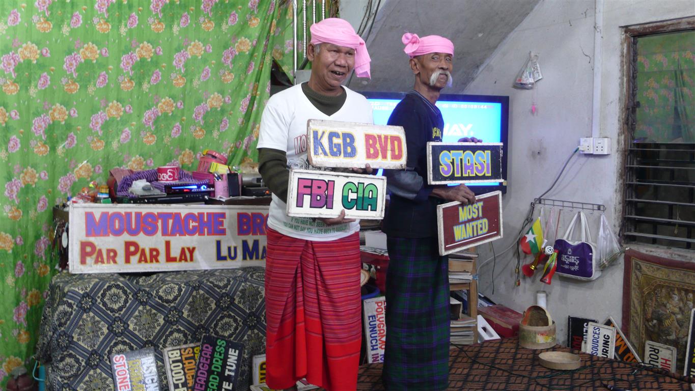 After their release in 2002 the reunited Moustache Brothers remained blacklisted from playing at outside events (marriages, funerals and so on). However, they played a series of gala performances at home attended – inevitably – by government agents. The regional commander soon said to Par Par Lay not to perform at home anymore. When he got home, some tourists had already gathered for that night’s show, and he and his family imaginatively decided to perform without costumes and makeup. Thus the show went on for the tourists (and the KGB people – Lu Maw´s nickname for Myanmar´s military intelligence). They explained they were merely “demonstrating” a performance, since they could not do a “real” one without costumes. Somehow it worked.