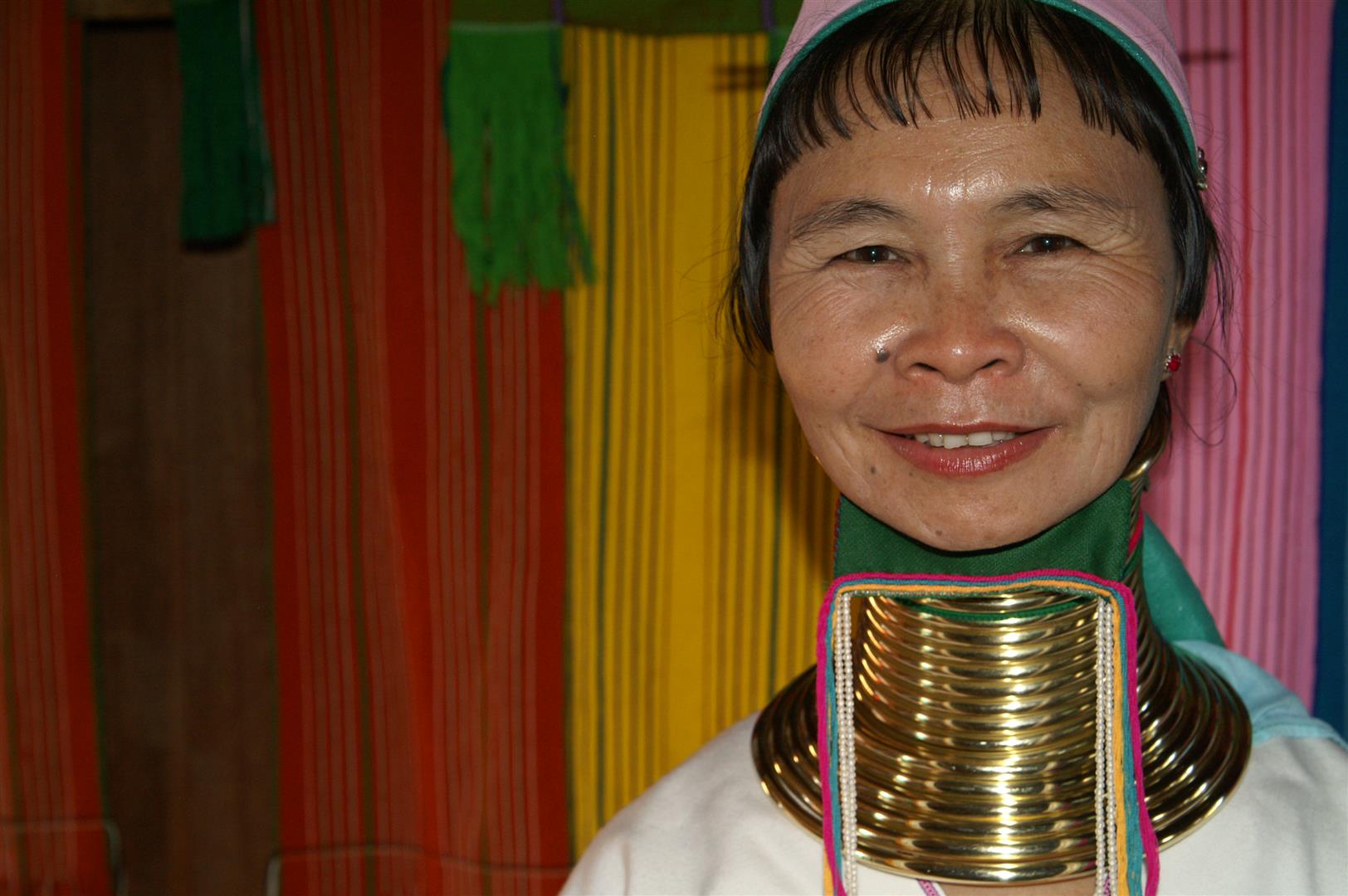 Women who wear these brass rings on their neck belong to a sub-group of the Karen known as the Padaung. They are an ethnic minority in Burma. A further myth is that these rings act to elongate the wearer’s neck. Any chiropractor or orthopedic surgeon will tell you that this would lead to paralysis or death. In fact the appearance of a longer neck is a visual illusion. The weight of the rings pushes down the collar bone, as well as the upper ribs, to such an angle that the collar bone actually appears to be a part of the neck!