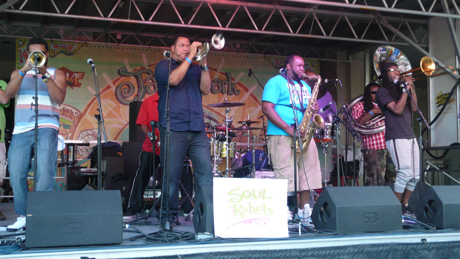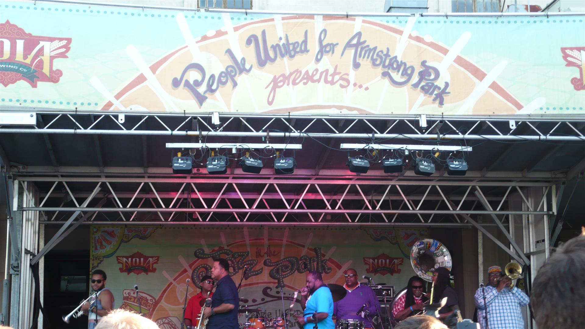 Klar, dass ich dabei bin. Die Sound Rebels und einige andere Gruppen im Louis Armstrong-Park auf der Bühne! Wir sitzen im Gras, andere haben ihre Campinghocker und Picknickdecken dabei. Macht Spaß. Anschließend geht es noch auf einen Drink in die Bourbon Street.