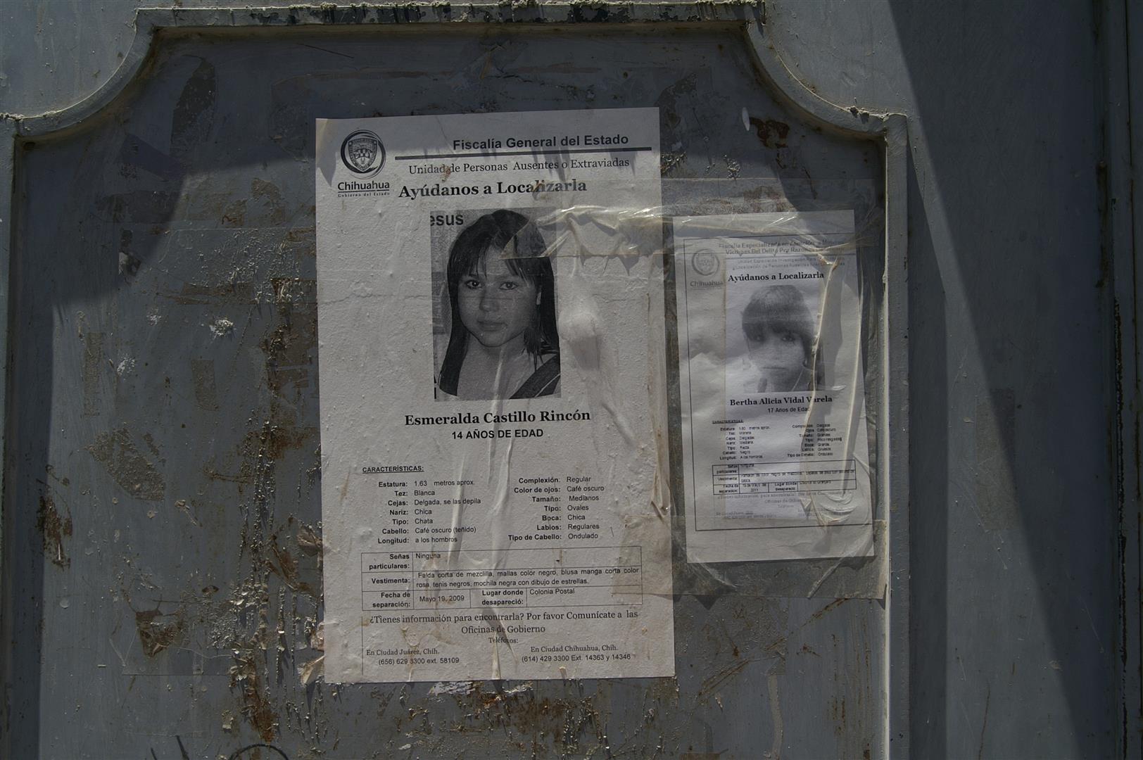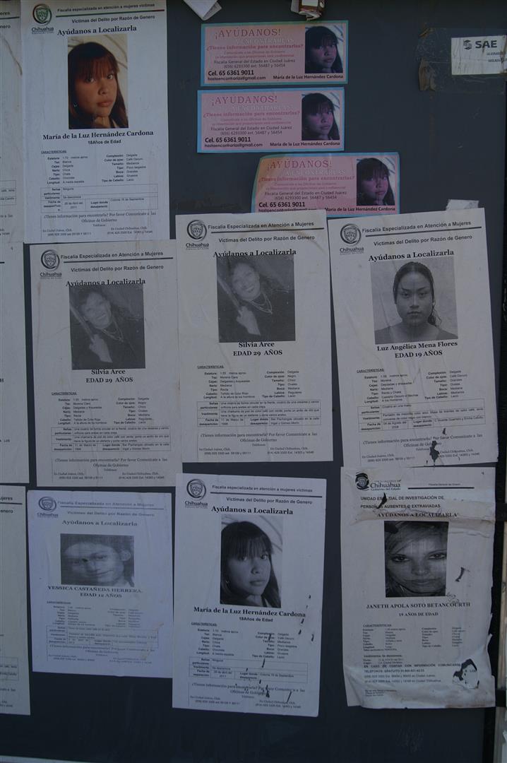 People tell me that today the violence has largely disappeared. I doubt it. All over on the streets I see posters with names and photos of girls which disappeared recently or during the last months. Many young women has been found dead on garbage sites or remoted areas around Ciudad Juárez.