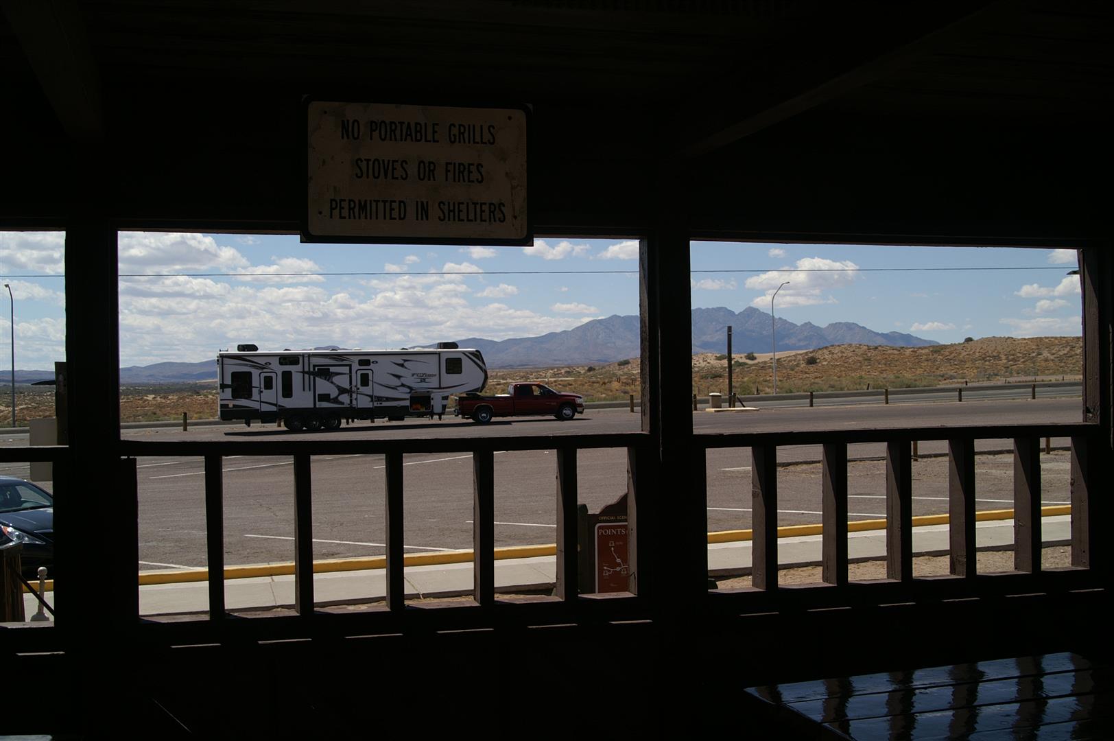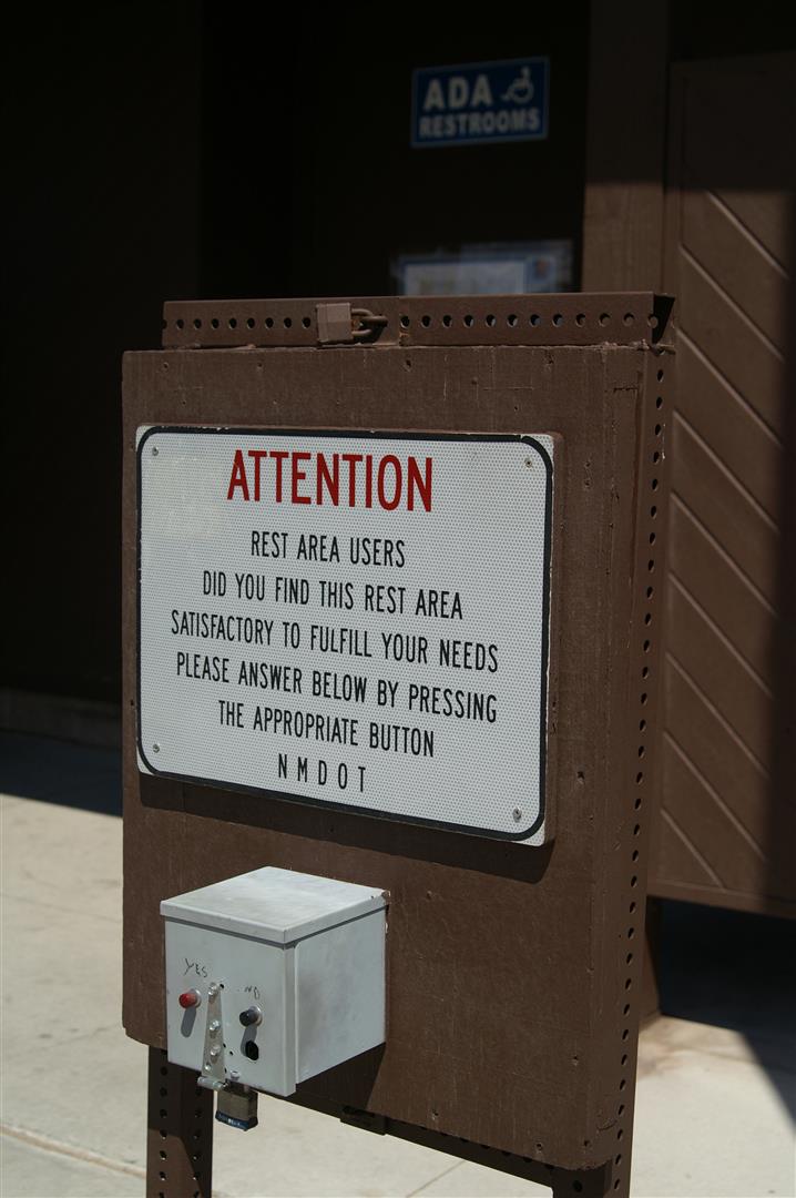 … fand ich in New Mexiko. Wie aus einem Western! Fehlt nur noch, dass John Wayne über die Bergkette reitet. Der Besucher kann sogar abstimmen, ob ihm der Rastplatz gefällt oder nicht! Aber – seht selbst!