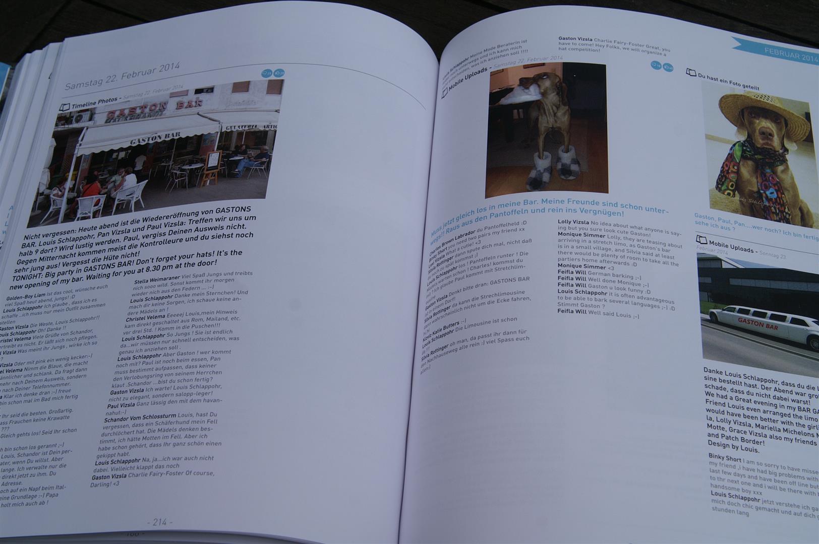 Habe heute ein tolles Geschenk erhalten. Ein Buch nur über mich und Euch, meine Freunde. Einfach klasse! Ihr seid alle da. Motte, Mina, Lexi, der Louis, Binky, Pan, Paul, Charlie und ganz viele andere. Mit Fotos! Auf 341 Seiten! Ich freue mich riesig und schmökere schon den ganzen Tag darin.