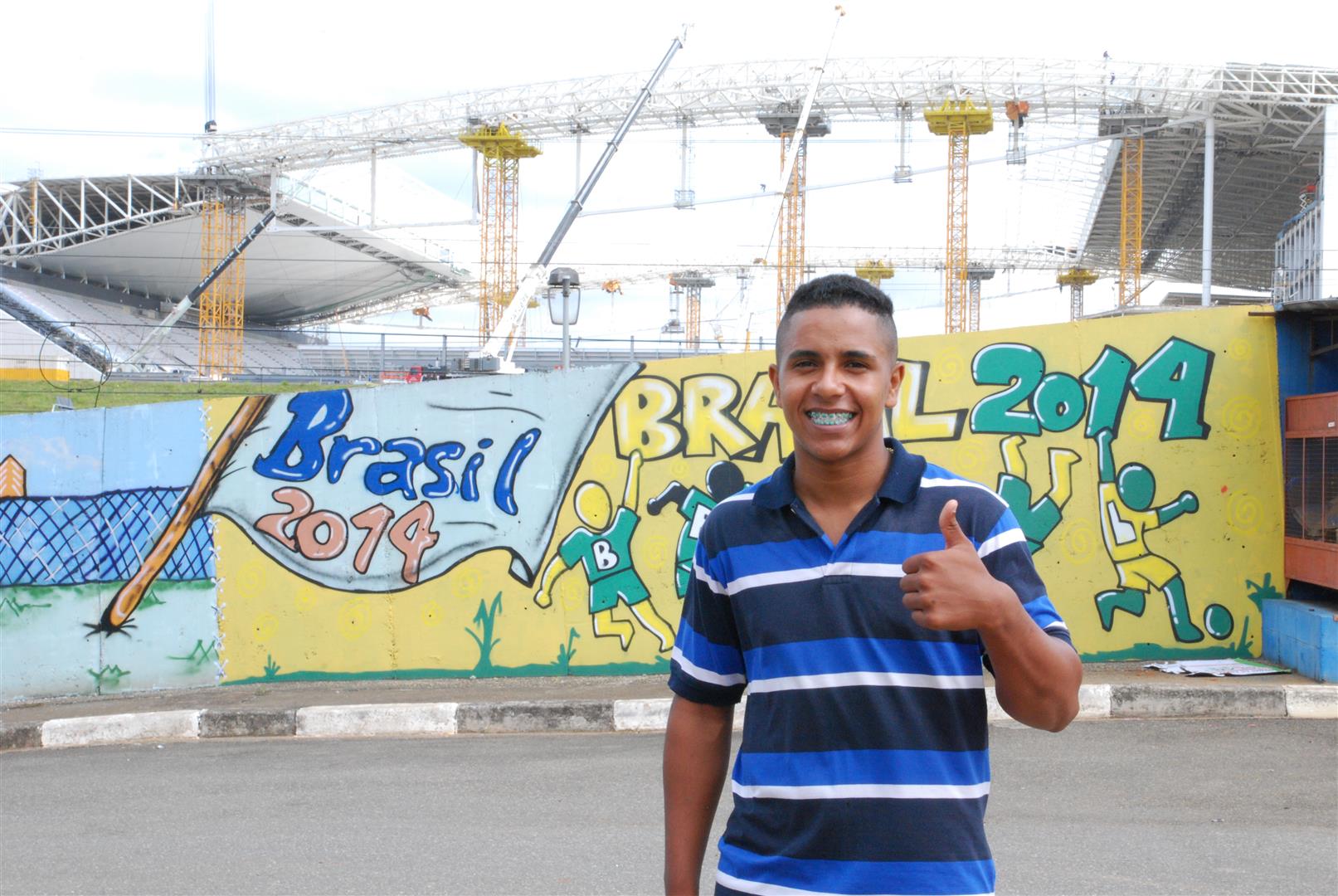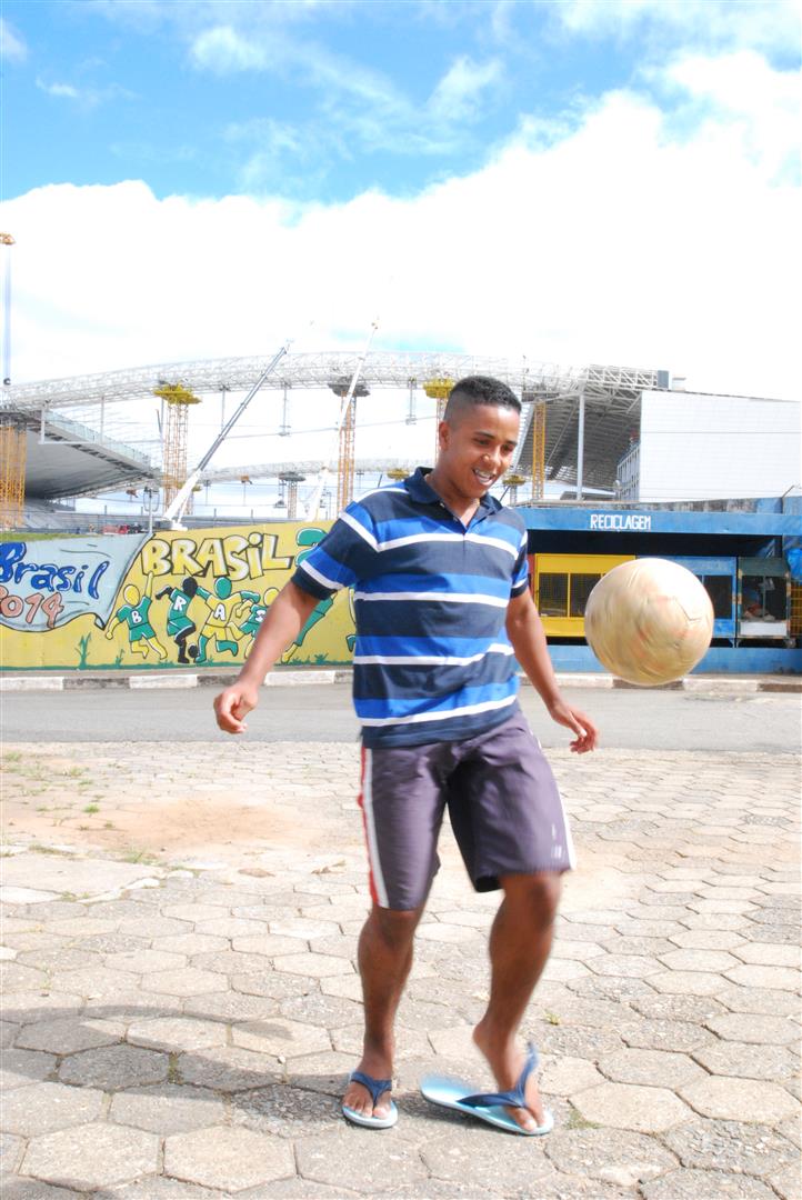 Zukunft. Die hat der 17-Jährige täglich vor Augen. Denn zwischen Andersons großem Traum und der Wirklichkeit liegen lediglich eine Eisenbahnschiene, eine Straße und eine kleine, begrünte Anhöhe. Einen Steinwurf vom Jugendzentrum entfernt wächst São Paulos neues WM-Stadion in die Höhe. Jedes Mal, wenn er auf dem staubigen Don-Bosco-Fußballfeld trainiert, kann er die Arena sehen. Das 250-Millionen-Euro-Projekt ist Andersons persönliche Erinnerung daran, nicht von seinem neuen Weg abzukommen. Es ist ein modernes, luftiges Stadion, in dem am 12. Juni die Fußball-Weltmeisterschaft mit dem Spiel Brasiliens gegen Kroatien eröffnet wurde.