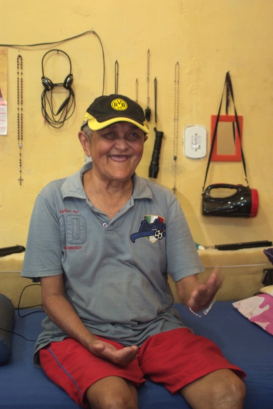 Dabei zieht er seine speziellen Schuhe an, setzt seine Mütze auf und geht hinaus. In die Kirche, beten, wie jeden Tag. Manchmal betet Flavio Lisboa für ein gutes Ergebnis seiner Mannschaft, manchmal für die vielen anderen Menschen, die wegen Lepra kein normales Leben führen können, manchmal dankt er Gott einfach, dass es ihm heute relativ gut geht. Aber immer betet er dafür, dass seine Söhne nicht an Lepra erkranken werden.