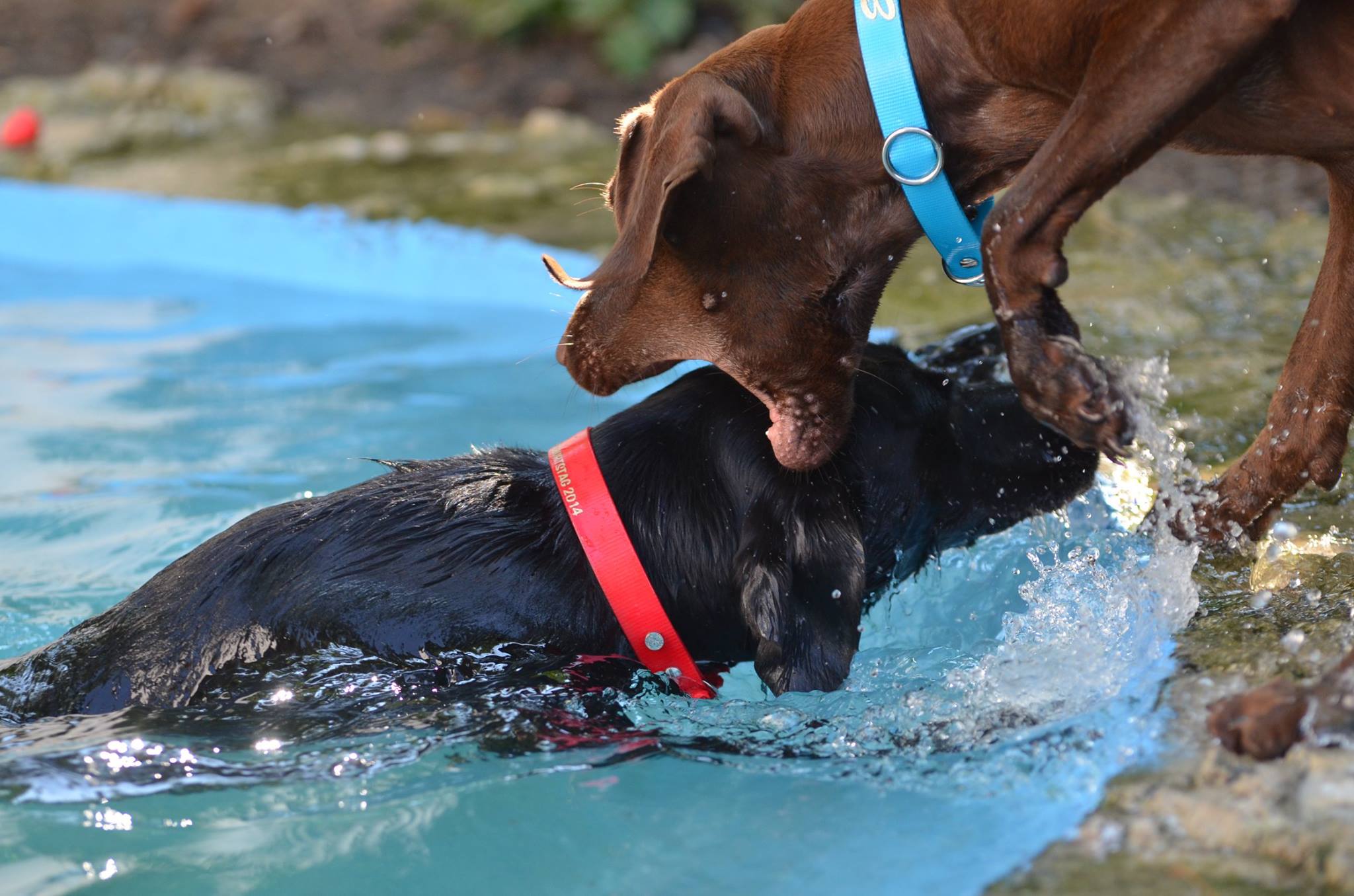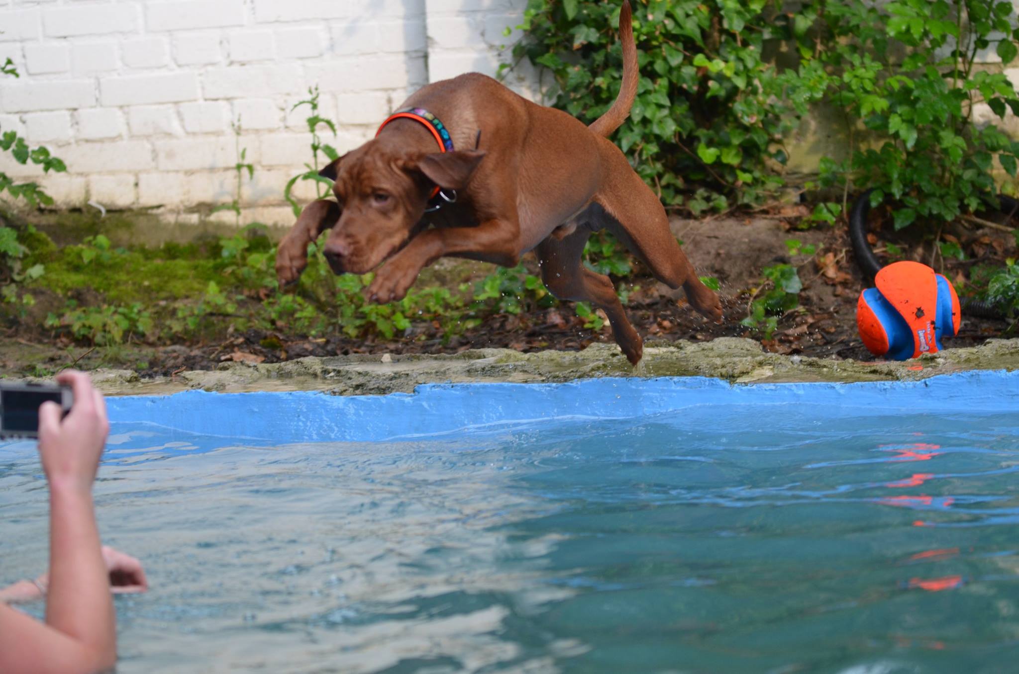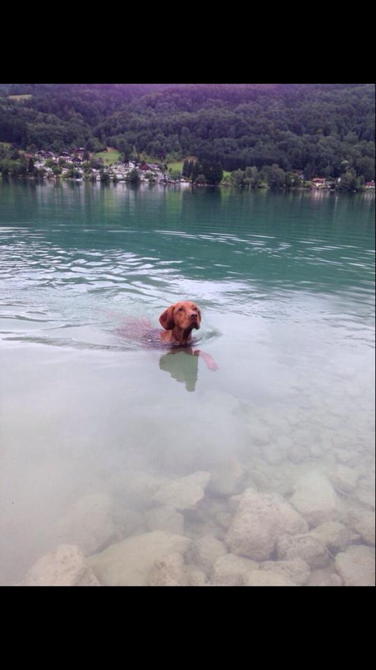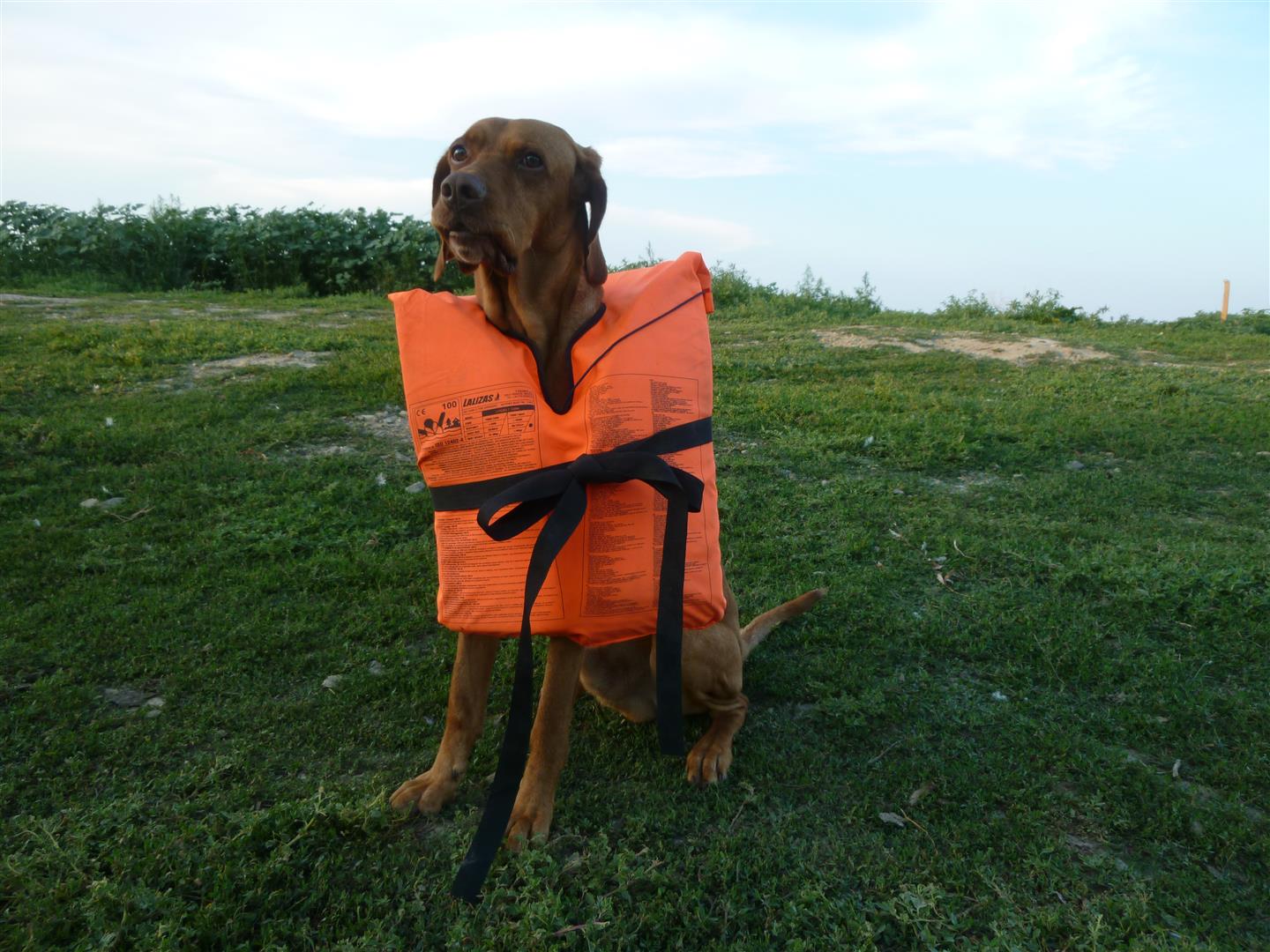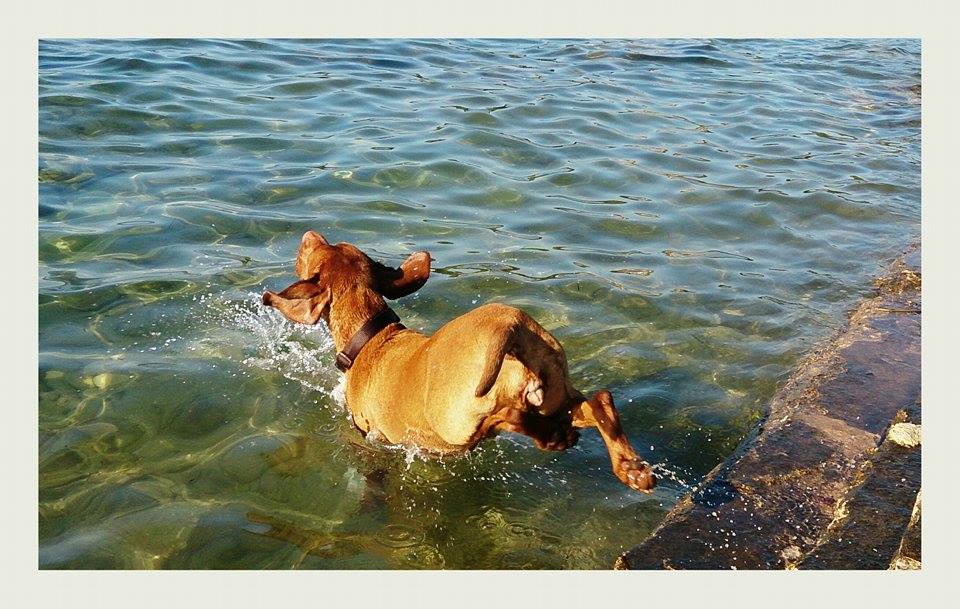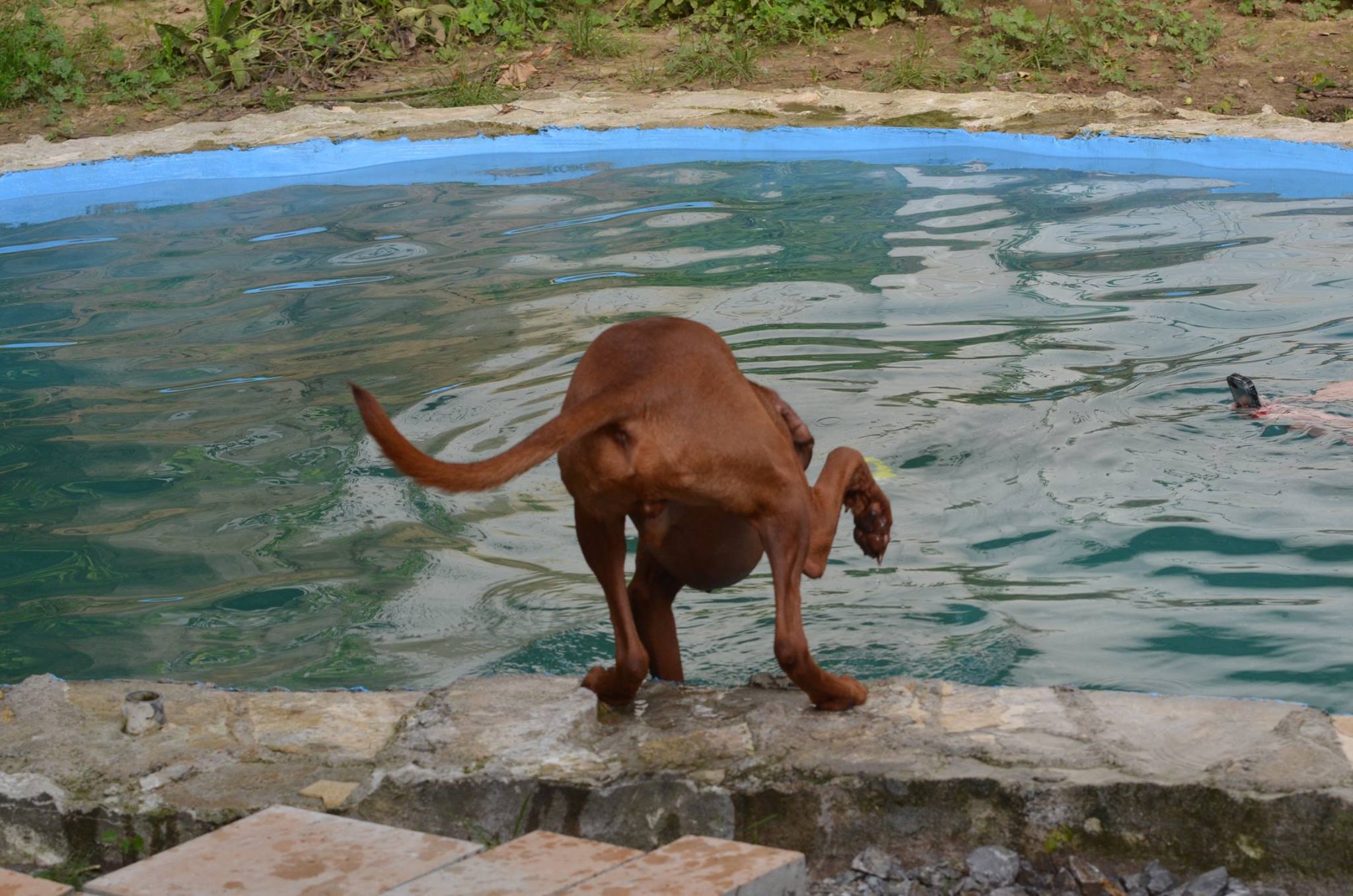 Ich habe meine Freunde zum Schwimmen eingeladen. Und wie es ihnen gefällt! Schade, dass ich selbst Angst vor Wasser habe. So blieb mir nichts anderes übrig, als den Gesellen nur zuzuschauen. Vorsichtshalber habe ich mir mal die Rettungsweste angezogen. Wer weiß! Vielleicht wird ja einer übermütig und zieht mich rein!