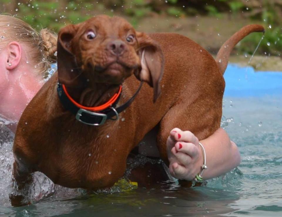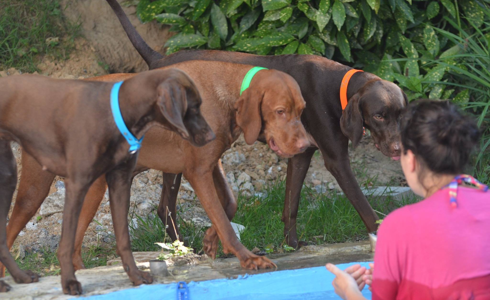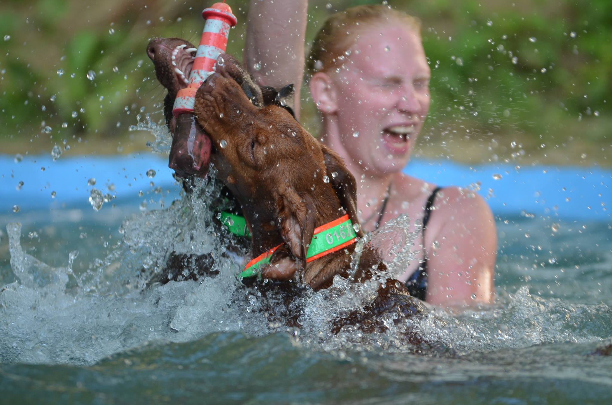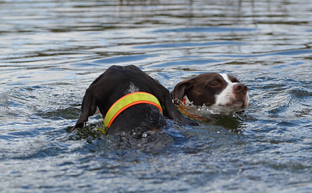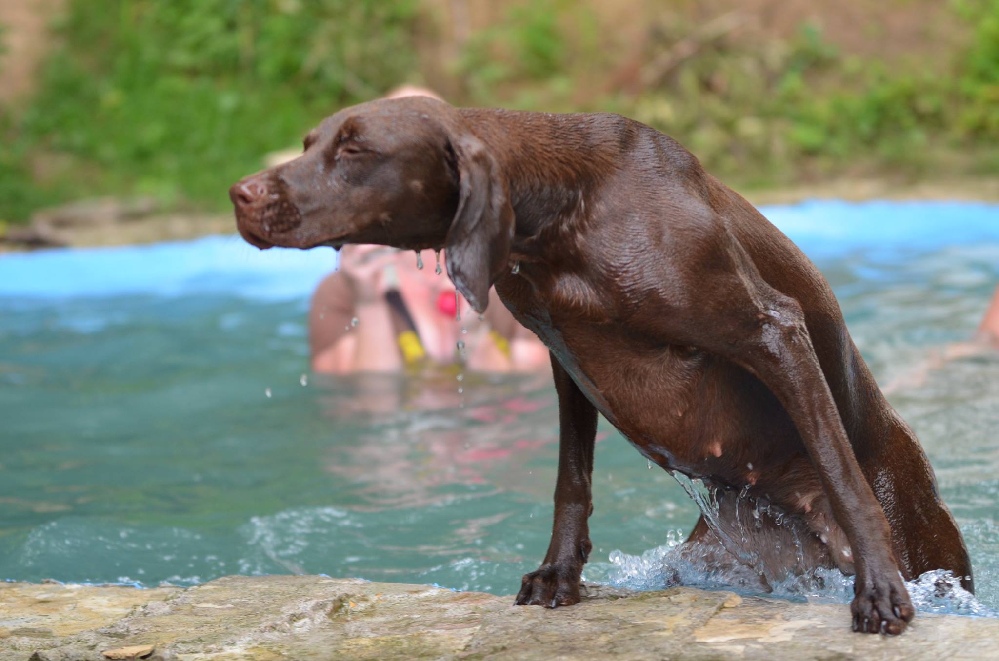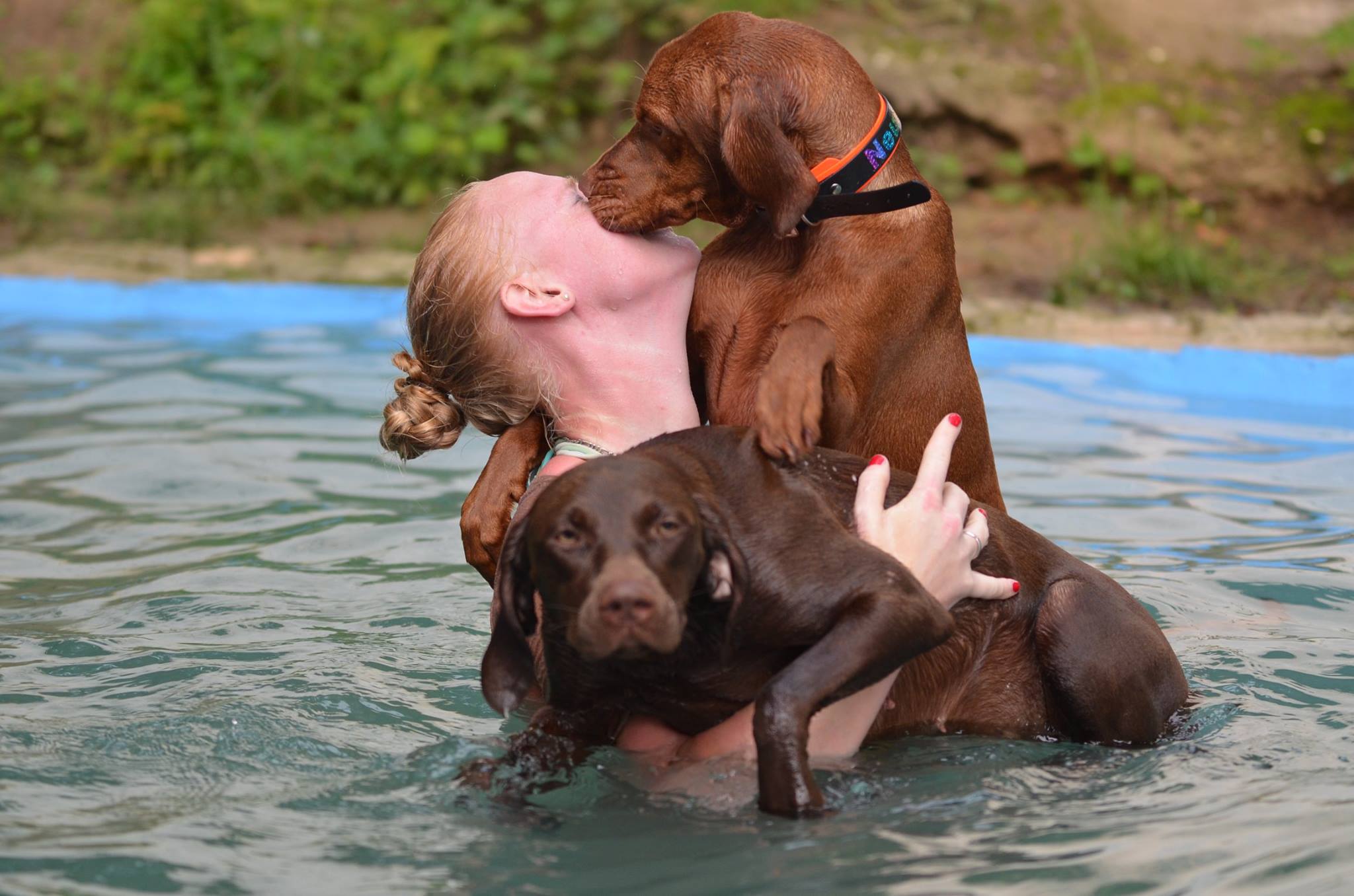 Ich habe meine Freunde zum Schwimmen eingeladen. Und wie es ihnen gefällt! Schade, dass ich selbst Angst vor Wasser habe. So blieb mir nichts anderes übrig, als den Gesellen nur zuzuschauen. Vorsichtshalber habe ich mir mal die Rettungsweste angezogen. Wer weiß! Vielleicht wird ja einer übermütig und zieht mich rein!