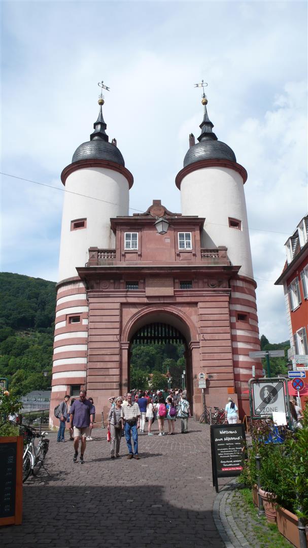 Das Heidelberger Brückentor existiert seit dem Mittelalter. Ursprünglich waren die beiden 28 Meter hohen Doppeltürme am Südende der Alten Brücke Teil der Stadtbefestigung. Am Tor entrichteten Auswärtige einen Brückenzoll, um anschließend die Stadt betreten zu können. Im Verteidigungsfall wurde ein Falltor herunter gelassen. Im westlichen Turm befanden sich Kerkerräume. Hier wartete der Räuber Hölzerlips auf seine Hinrichtung, die wegen des Überfalls auf eine Postkutsche am 31. Juli 1812 vollstreckt wurde.