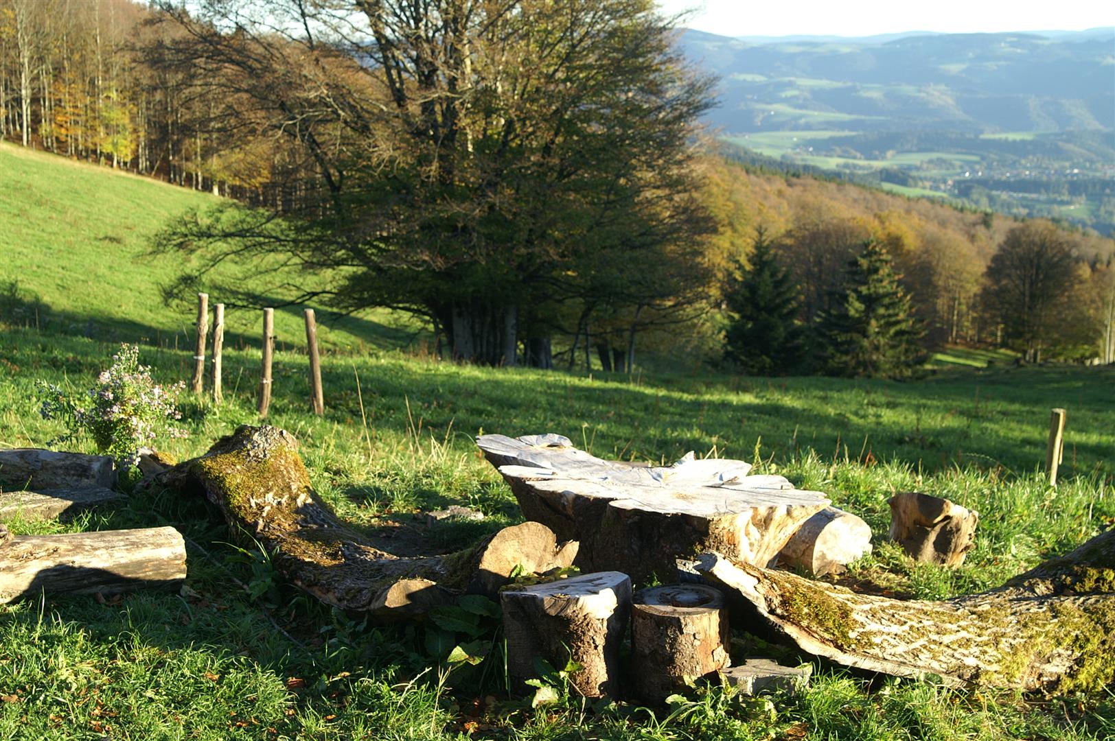 Auf den Bänken vor der Gummenhütte oberhalb des Glottertals drängen sich die Besucher und genießen die Aussicht auf den Schwarzwald. Wanderer, Mountainbiker, Übernachtungsgäste! Partner Andreas Beha hat viel zu tun in der Küche.
