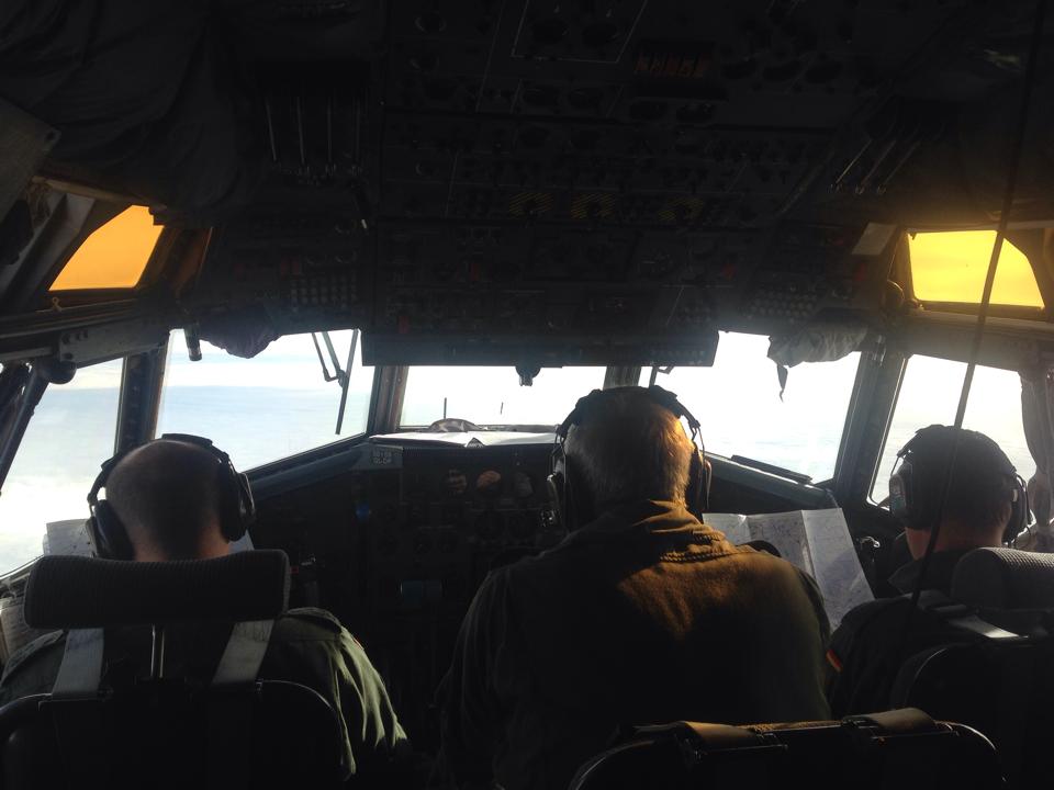 Einen Teil des Fluges darf ich im Cockpit zurücklegen. Was gibt es Schöneres, als auf die Unendlichkeit der Welt zu blicken!