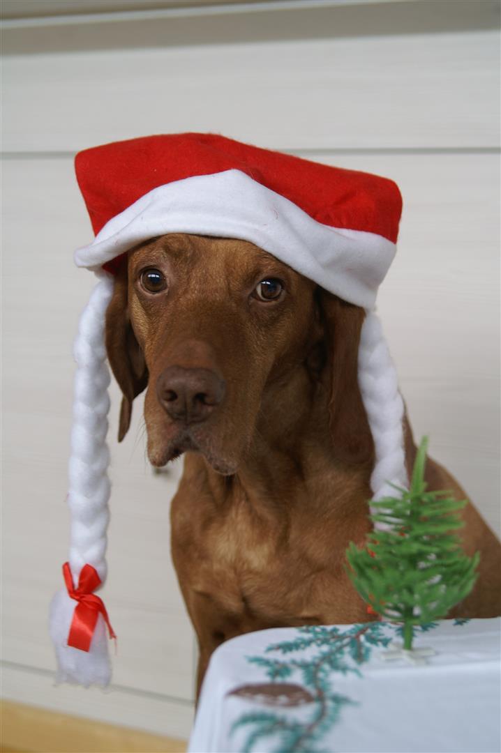 1. Gaston, you look so festive! Merry Christmas, Dixie Vizsla.