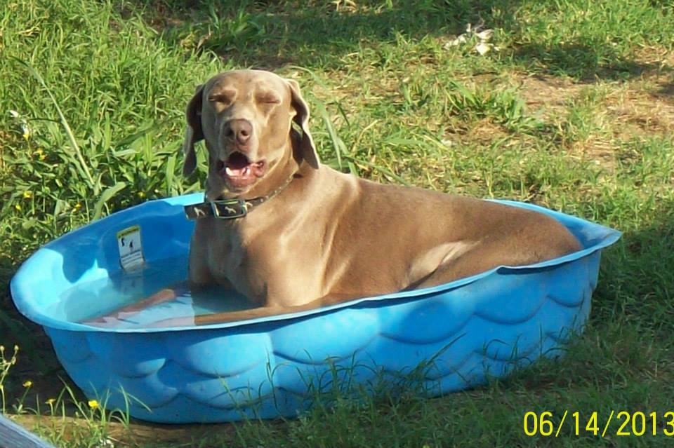 Auntie, we will call her, called the local shelters to no avail. They did not want me because „I had a home“. Auntie called Arkansas Weimaraner Rescue, there she told my story to a lovely woman by the name of Hermine Wilkins. She is the owner of Dogwatch Doggie Daycare and Arkansas Weimaraner Rescue. Hermine Wilkins decided to accept me into the rescue there only if Auntie could get me there. So that sets the stage for my escape. One day my Auntie came to visit me after „My Ex“ went to work, she untangles me from where I’m tied up, and puts me into her car. I was whisked away, now at my Auntie’s house she hid me away for five days until we could make the trip to rescue. I was finally out of there and had some fresh water, something I hadn’t had since I left my real mother’s side. It was a glorious five days to me anyways – if only I knew what was to come!
