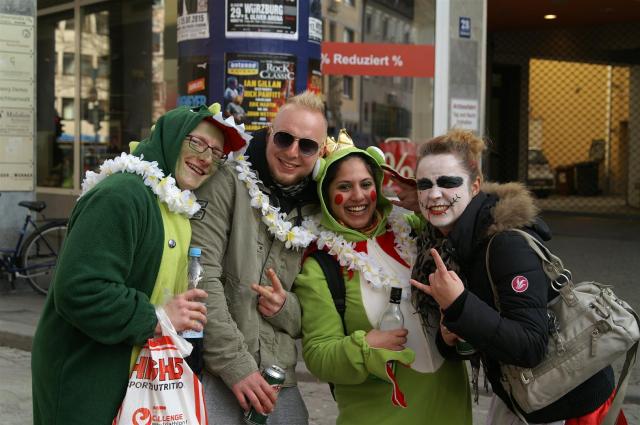 Bei uns in Unterfranken ruft man Helau und nicht Alaaf. Ehrlich gesagt, ich bin ein Faschingsmuffel. Trotzdem wollte ich mir den bunten Gaudiwurm nicht entgehen lassen. Der Faschingszug von Würzburg, meiner Heimatstadt, ist der größte in ganz Süddeutschland. Heute säumten rund 100.000 Menschen bei sonnigem Wetter und blauem Himmel die Straßen. Angemeldet waren 154 Gruppen mit rund 3.000 Teilnehmern, darunter 14 Musikkapellen, 29 Fußgruppen, 53 Garden und Tanzmariechen, vier Männerballetts und 48 Motivwagen. Beteiligt waren außerdem 27 Faschingsgesellschaften aus Stadt und Umgebung. Rund zwei Stunden nach dem Umzug waren die Straßen schon wieder sauber – dank den Stadtreinigern! Und zum Abschluss gönnte ich mir einen Krapfen, wie jedes Jahr zu Fasching.
