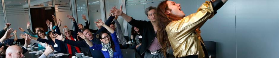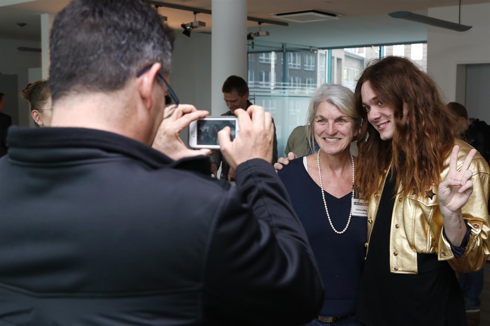 Mode-Ikone Riccardo Simonetti und die Teilnehmer des Blogcamps: „Bitte recht freundlich! Und jetzt alle mal die Hände hoch und winken!“