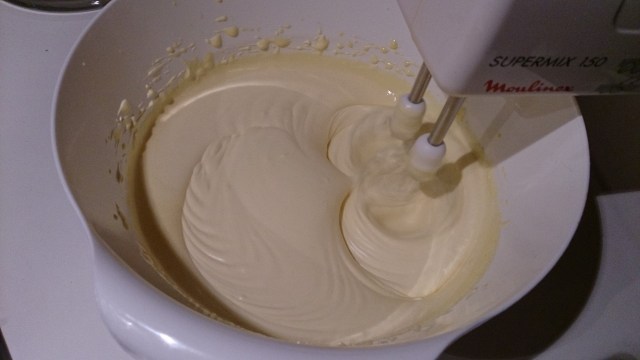 Monta i tuorli con lo zucchero fino ad ottenere una crema bianca e spumosa (Foto 2).
