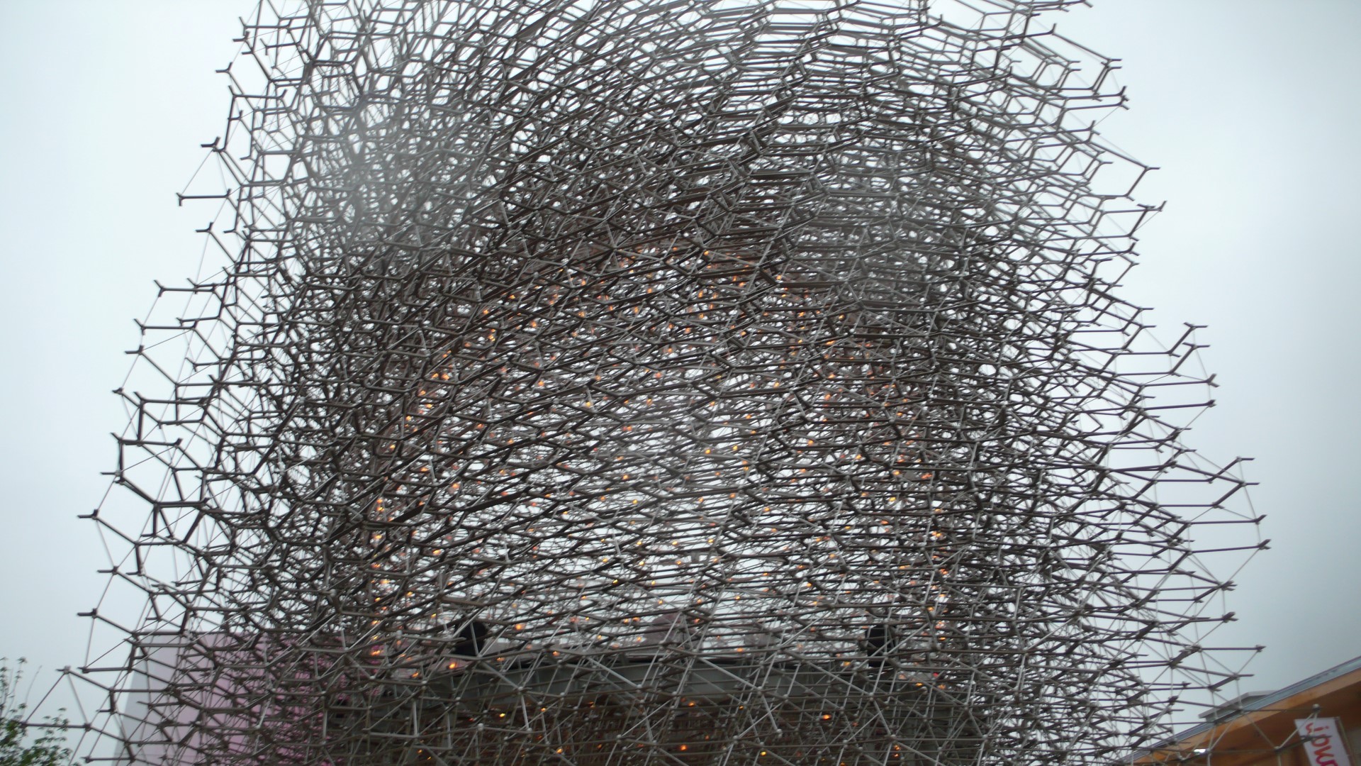 Deutschland als eines der 145 teilnehmenden Länder, hat das Thema rund ums Essen sehr ernst genommen. 80 Prozent der vor allem aus Holz hergestellten Halle sollen recycelt werden, sogar die Schuhe der Hostessen seien kompostierbar. Die Briten haben einen überdimensionalen Bienenkorb aus LED-Lichtern gefertigt, der direkt mit einer Bienenkolonie in Nottingham verbunden ist.