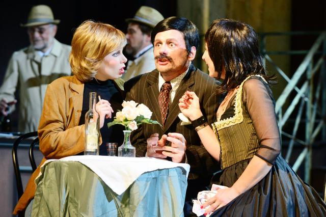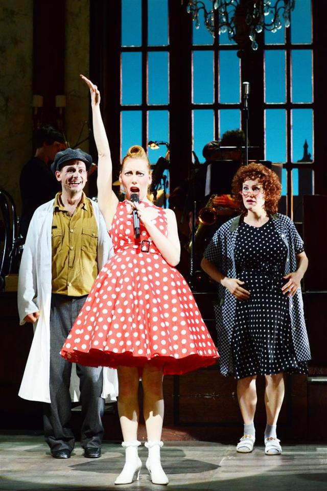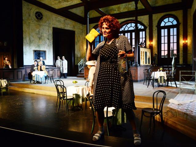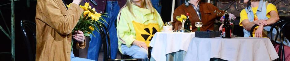 Daran und an noch viel mehr erinnert sich die Klofrau Margot (Marianne Kittel) an ihrem letzten Arbeitstag in ihrem geliebten Café. Sie kann viel erzählen und das tut sie auch in dem neuen Stück „Café REWUE“ im Mainfranken Theater Würzburg. Sich aufs Altenteil zurückziehen möchte die „Zuckerpuppe von der Kloputztruppe“ noch längst nicht. Und das sagt sie auch der Wirtin Luise (Barbara Schöller), die ihr geduldig zuhört, mal mehr, mal weniger verständnisvoll. 100 Jahre Ereignisse der Stadt, lustige, traurige, historische, alle gemischt mit der unvergesslichen Musik eines ganzen Jahrhunderts, verführt die Zuschauer zum Nachdenken und Träumen.