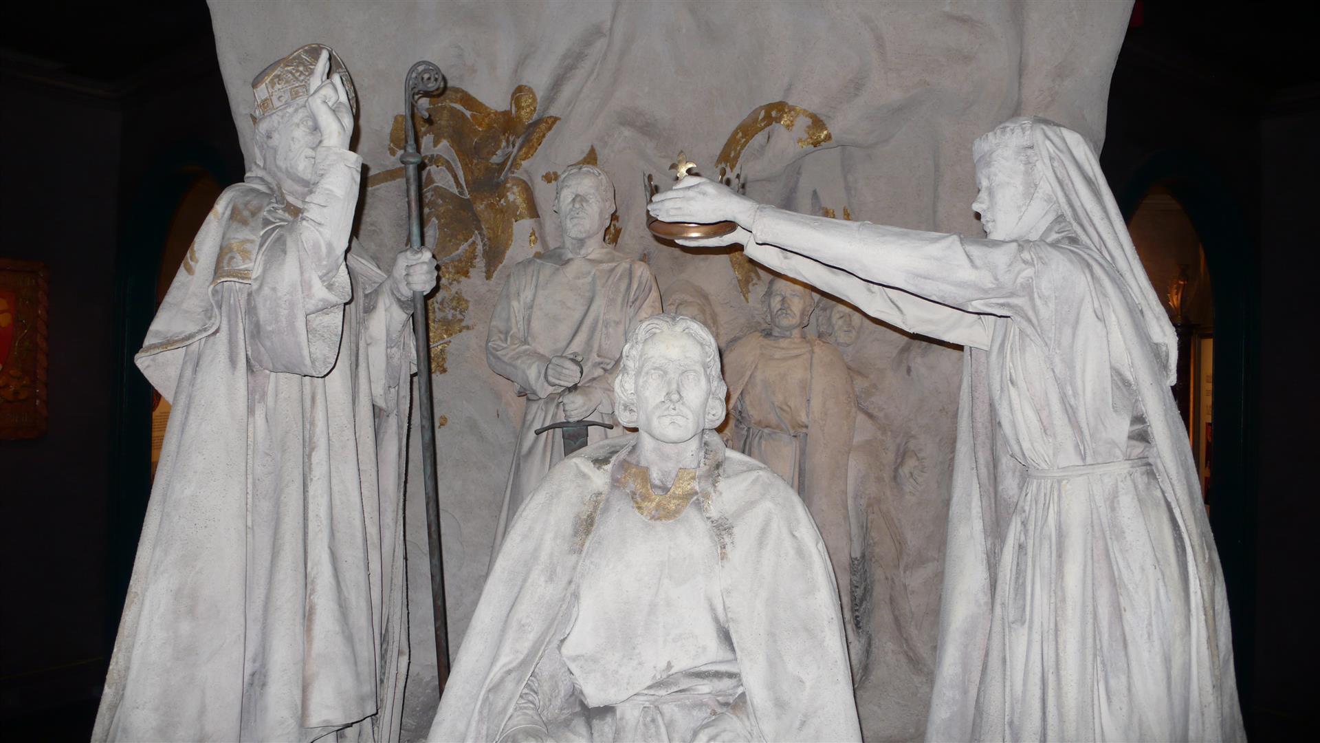 Das königliche Amtsschwert, die Scheide und das Schwertgehenk sind mit dem päpstlichen Wappen von Julius II verziert, sowie mit christlichen Symbolen – Delphinen, Eicheln und Eichenlaub.
