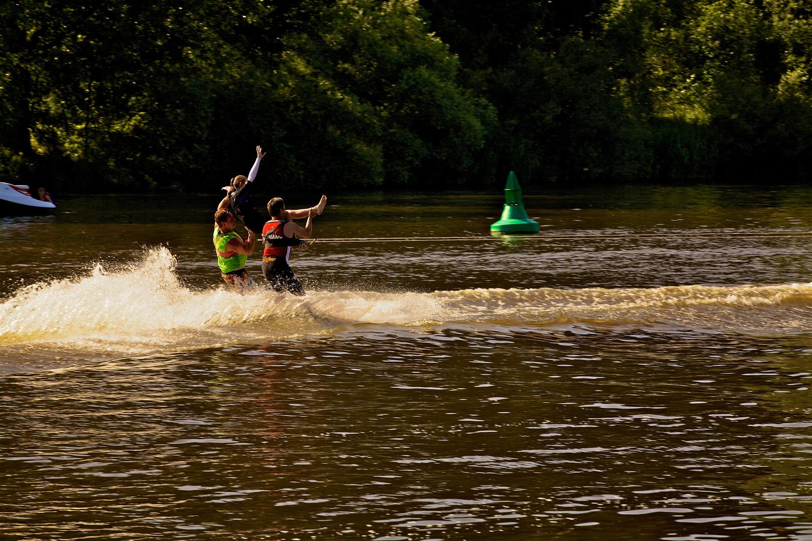 Eine Leidenschaft ist ihr geblieben: Wasserski fahren. Auf hohem Niveau, also Akrobatik, Tanz auf dem Wasser. Sie macht das seit 25 Jahren, jedes Wochenende, zumindest fast. Mal musste sie ein Jahr aussetzen, wegen einer Verletzung. Das fiel ihr schwer, sehr schwer. Jetzt war ich mal wieder mit dabei, bei ihrer Truppe. Und es hat mir Spaß gemacht, war ein schöner Nachmittag, auch mit eigenen Wasserski-Erfahrungen. Ich bin seit Jahrzehnten nicht mehr gefahren. Aber davon erzähle ich in einem anderen Beitrag.L1170777 (Large) IMG_3066 (Large) IMG_3077 (Large)