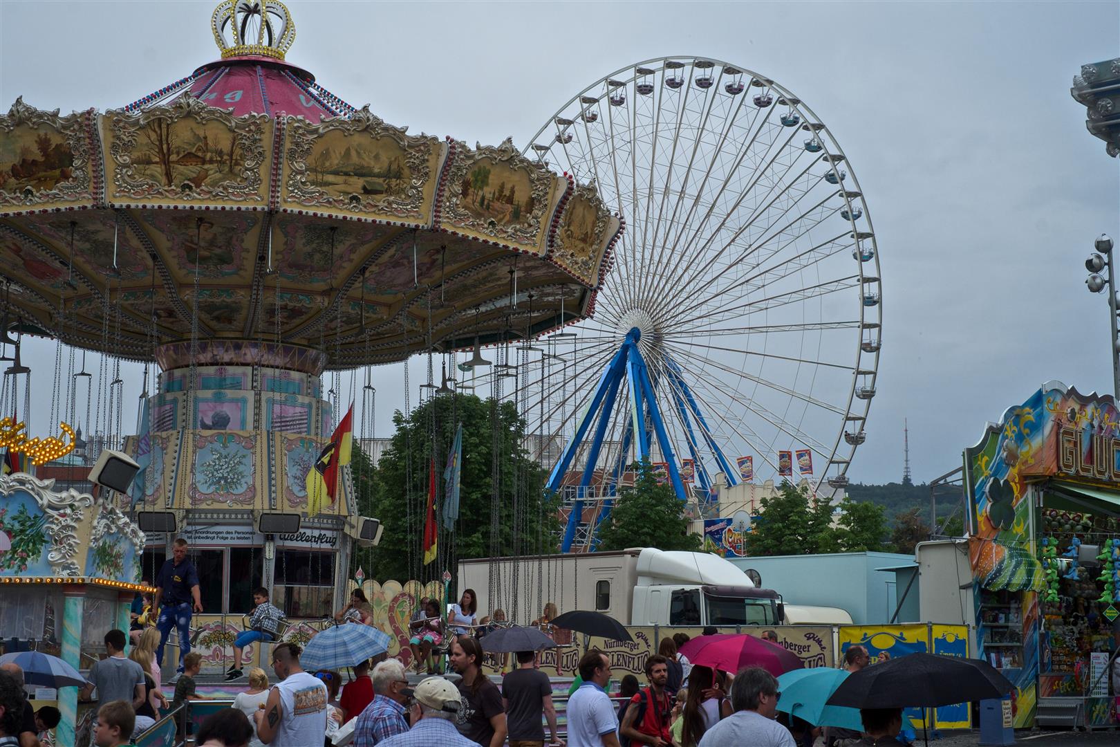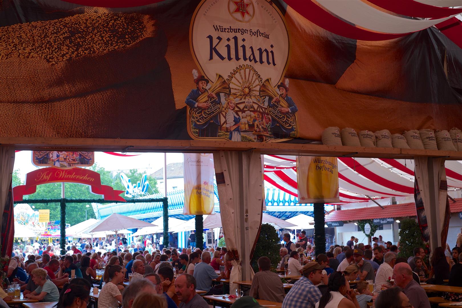 Für viele Würzburger ist Kiliani der Inbegriff des Sommers. Jeden Juli für zwei Wochen drehen sich die Karussells wieder auf der Talavera. Ein Besuch des Volksfestes mindestens ist für mich Pflicht. Als Kind zog mich immer der Mittwochnachmittag an. Da gab es die Eintrittskarten für die Fahrgeschäfte zum halben Preis. Manchmal hatten wir Kinder auch Freitickets und fuhren furchtlos überall mit. Was für ein Heidenspaß, als uns während der Achterbahnfahrt der Geschwindigkeitsrausch und in der Geisterbahn das nackte Grauen packte. Oder wir nach dem Kettenkarussell komplett die Orientierung verloren!