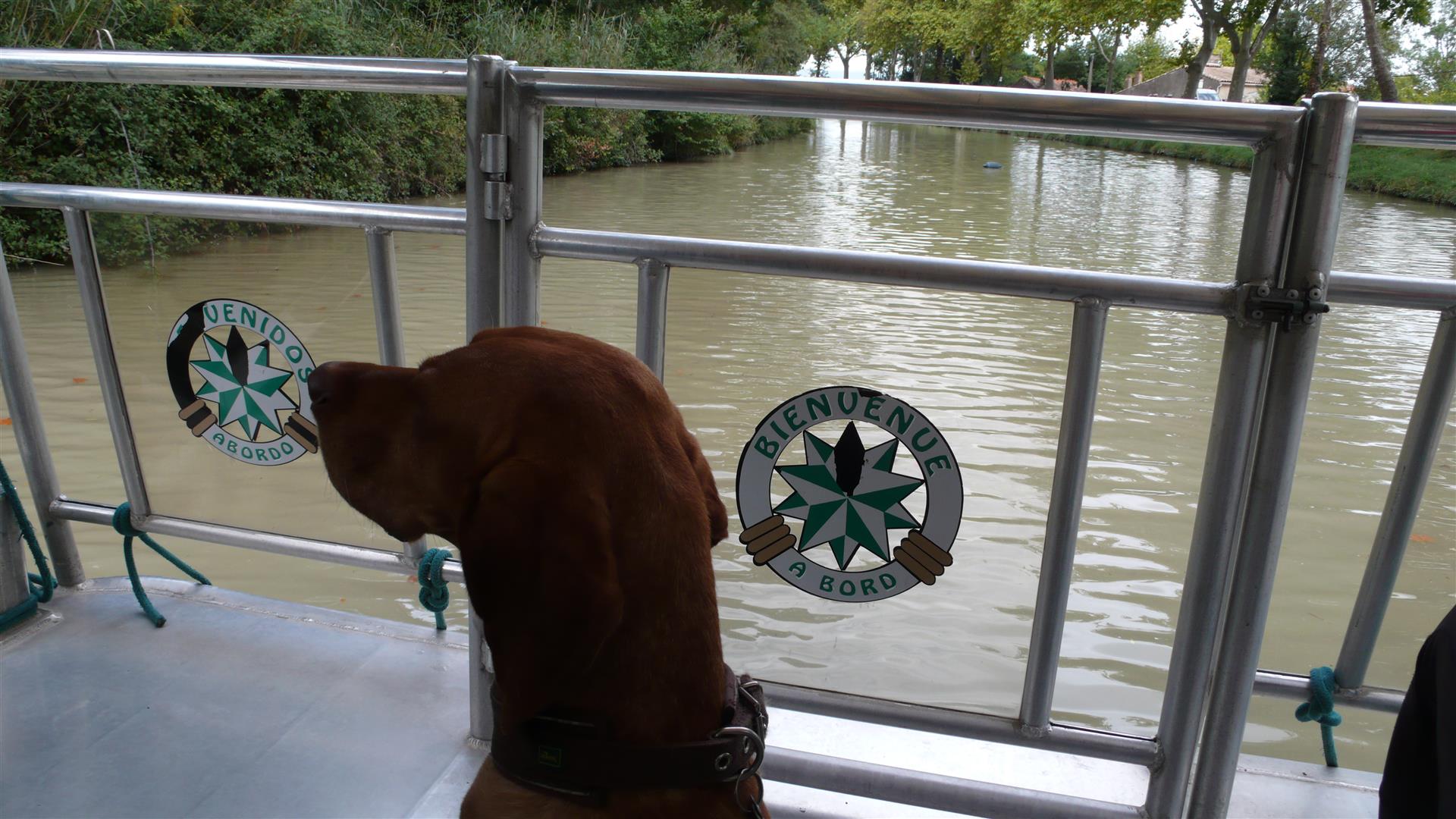 Hier bin ich wieder! Heute mal auf einem Boot. Wir schippern durch den Canal du Midi bei Carcassonne. Schaut mal da, die jahrhundertealten Bäume. Und wir fahren gerade durch zwei Schleusen, nämlich der Carcassonne- und der Saint Jean-Schleuse.