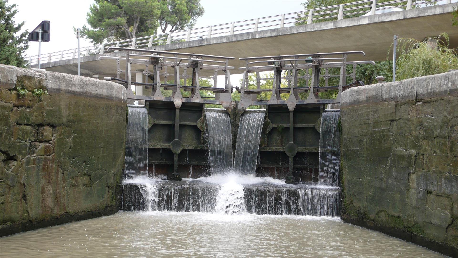 Genau dieser Kanal hier, ich würde ihn als Fluss bezeichnen, wurde um das Jahr 1667 künstlich angelegt, also von Menschenhand geschaffen. Wahnsinn, was? Er verbindet das Mittelmeer mit dem Atlantik. Aus rein wirtschaftlichen Gründen haben das die Menschen früher gemacht. Um Güter und Waren quer durch Südfrankreich zu transportieren.