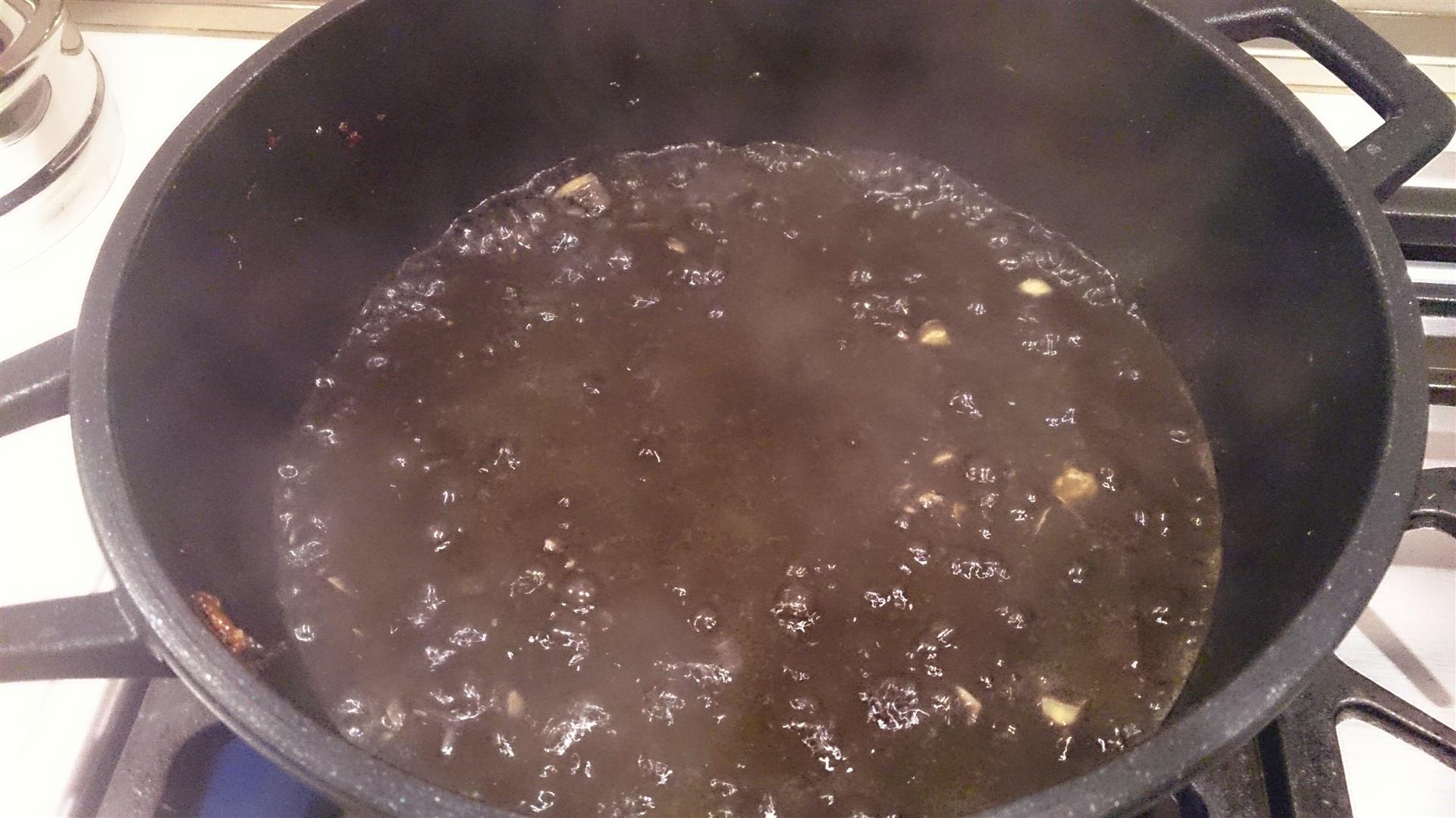 Mescola, abbassa la fiamma e prosegui la cottura, a recipiente coperto, per circa mezz’ora unendo qualche cucchiaio di acqua calda, se necessario (Foto 8).