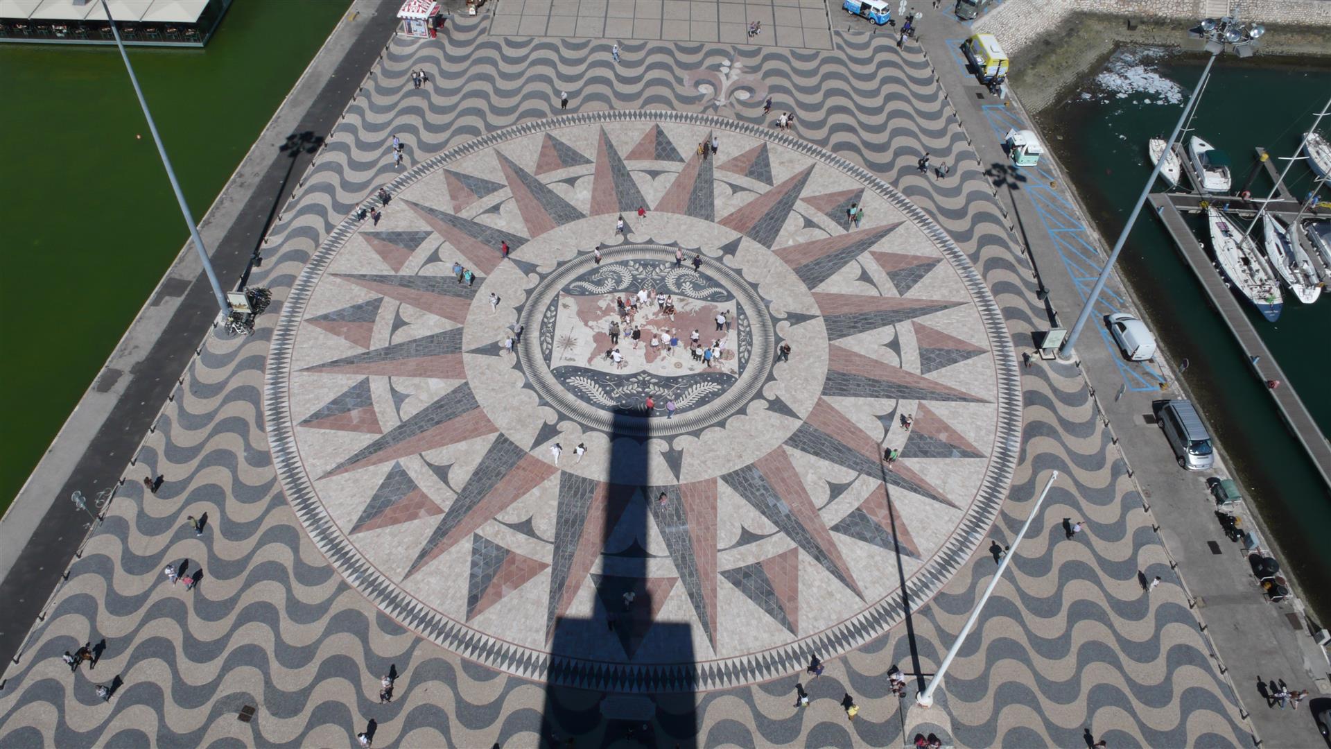 At the foot of the Monument to the Discoveries is a giant marble wind rose embedded in the pavement. A map of the world at the center of the wind rose charts the Portuguese explorations. The map shows the most important dates in the history of the discoveries and ships mark the locations where Portuguese explorers first set foot on land.
