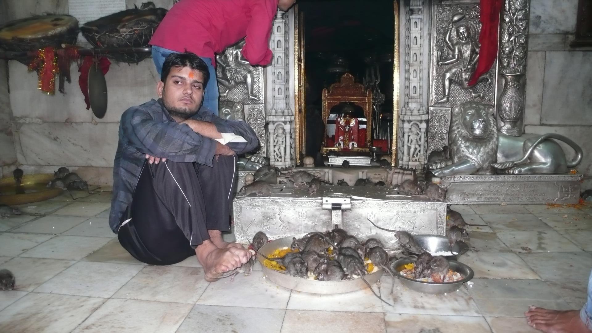 Geschichtlicher Hintergrund: Shri Karni Mata hat im 14. Jahrhundert gelebt. Sie wurde die Schutzgöttin der Rajputen und wurde noch zu Lebzeiten als Heilige verehrt. Nach einer Legende bat sie in Trance den Totengott Yama um die Seele eines verstorbenen Kindes. Yama antwortete jedoch, er könne ihr die Seele nicht übereignen, da das Kind schon wiedergeboren wurde. Daraufhin schwor Shri Karni Mata, dass niemand von ihrem Volk je wieder das Totenreich des Gottes Yama betreten würde und die verstorbenen Seelen nach ihrem Tod als Ratte wiedergeboren werden. Wenn diese das Leben als Ratte hinter sich haben, sollten sie als Barden wieder auferstehen. In der Kulturgeschichte der Rajputen waren fahrende Sänger schon immer hoch angesehene Personen und wurden verehrt.