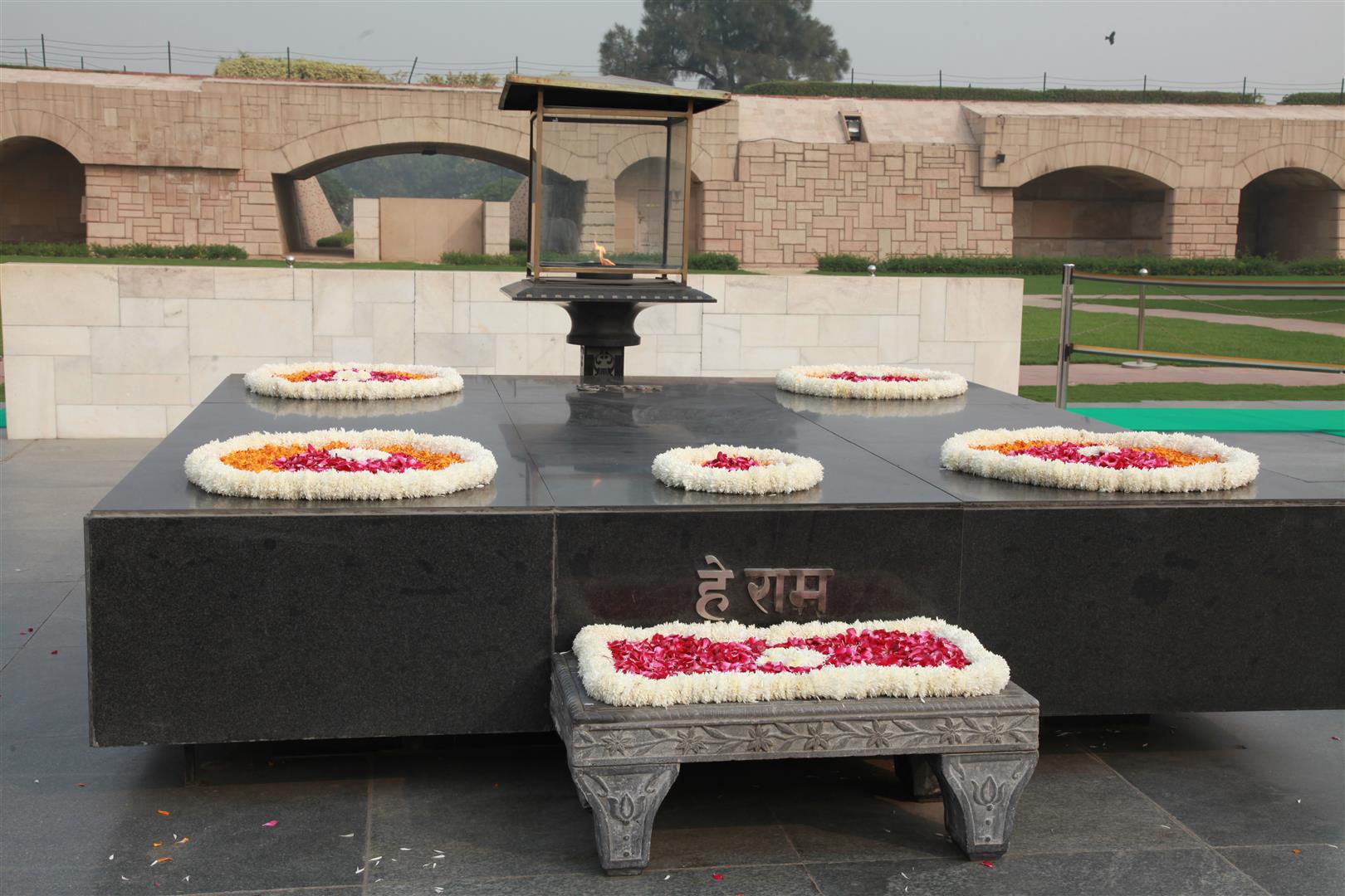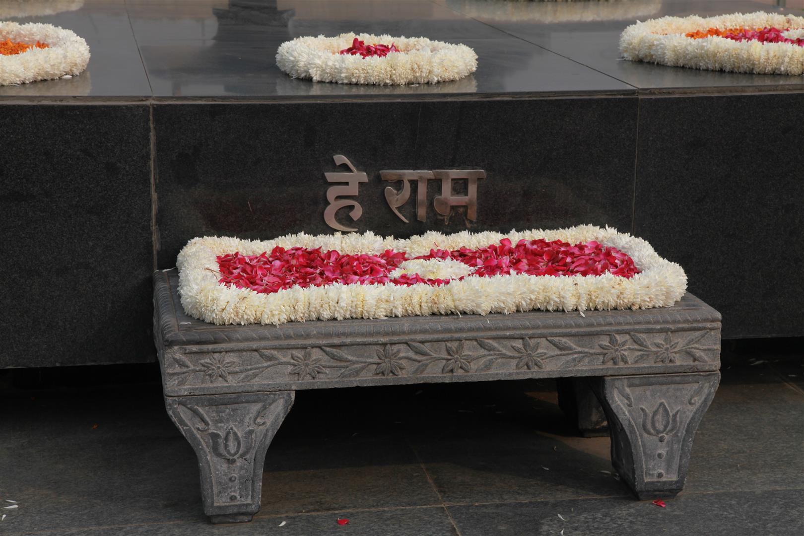 Mahatma Gandhi’s earthly journey came to an end on January 30, 1948. Raj Ghat is a black marble platform that marks the spot of Mahatma Gandhi’s cremation one day after his assassination. It is left open to the sky while an eternal flame burns perpetually at one end. It is located on the banks of the river Yamuna in Delhi. Die Inschrift zeigen seine letzten Worte „Oh God“.
