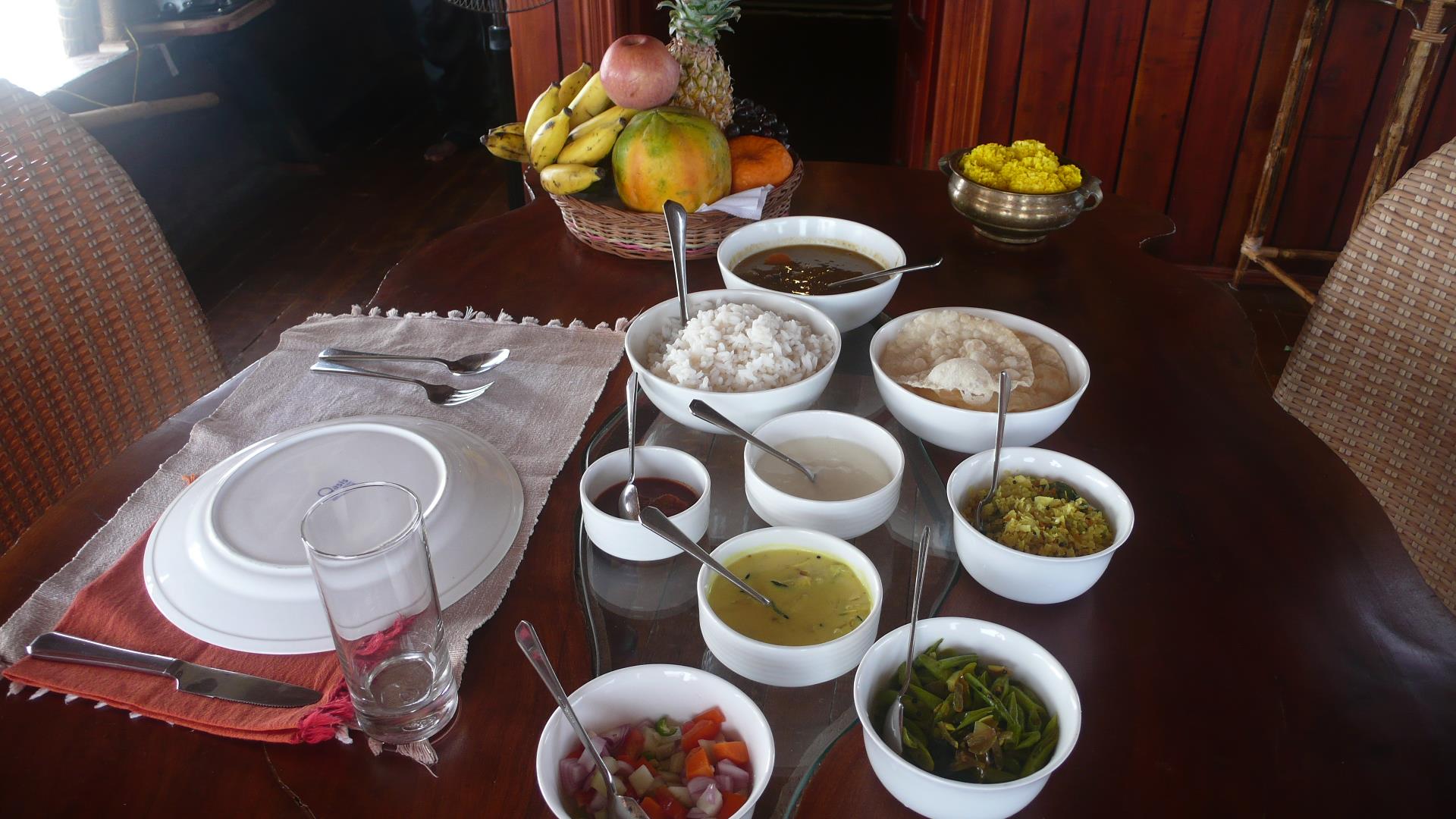 I have been the only guest at the houseboat which belongs to Somatheeram group, one of India’s leading Ayurveda resorts. There was the cook and the captain only. I got a huge variety of Vegetarian Food (which I ordered beforehand), made by cook Roji Vargees. He works for the last 4 years on the boat. „Mostly we get tourists from Europe, some also from the US“, he adds.